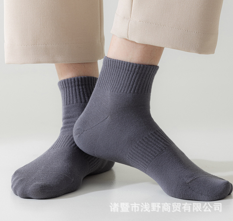 남성용 순면 양말 봄 가을용 짧은 양말 냄새 방지 땀 흡수 무봉제 스포츠 러닝용 순면 회색 남성용 중간 길이 양말 봄용스토어 가기