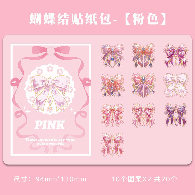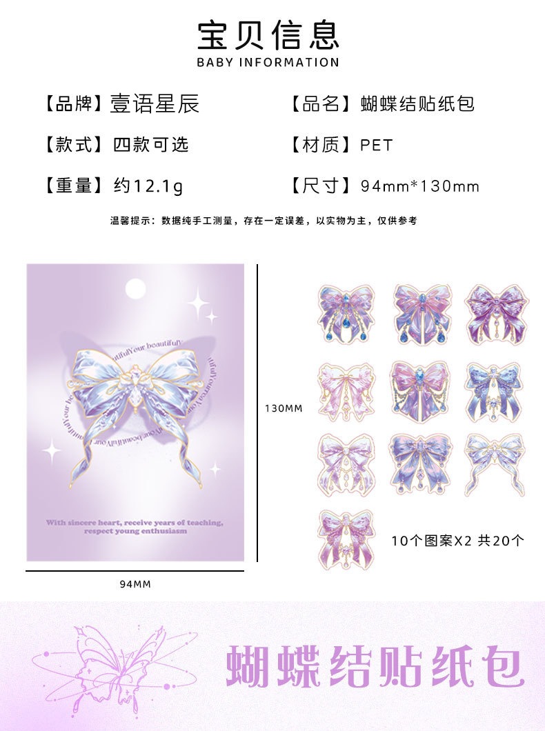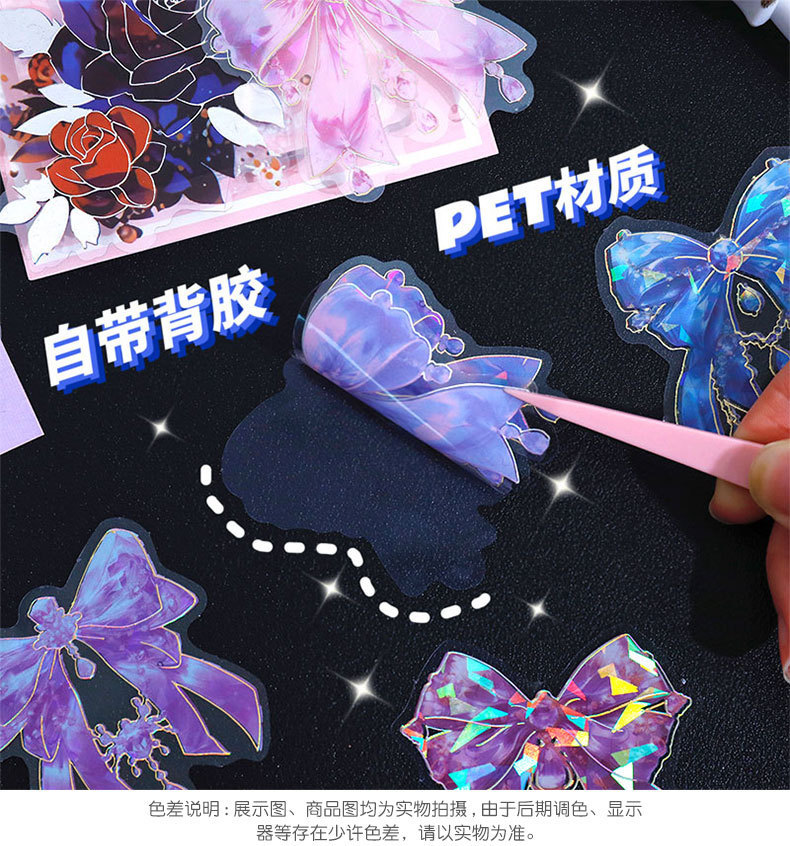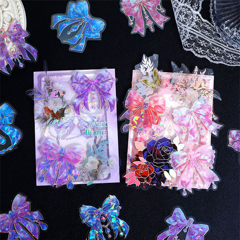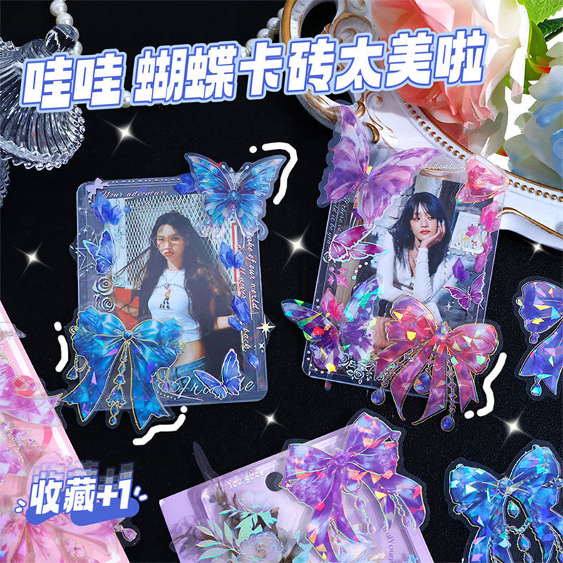 跨境炫彩蝴蝶结贴纸创意镭射PET贴画立体咕卡流麻手帐DIY装饰粘贴스토어 가기