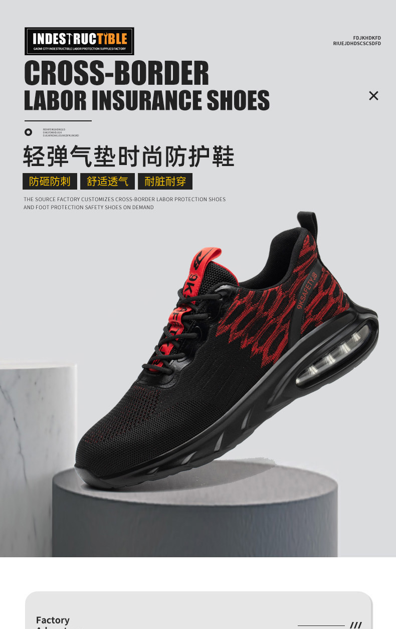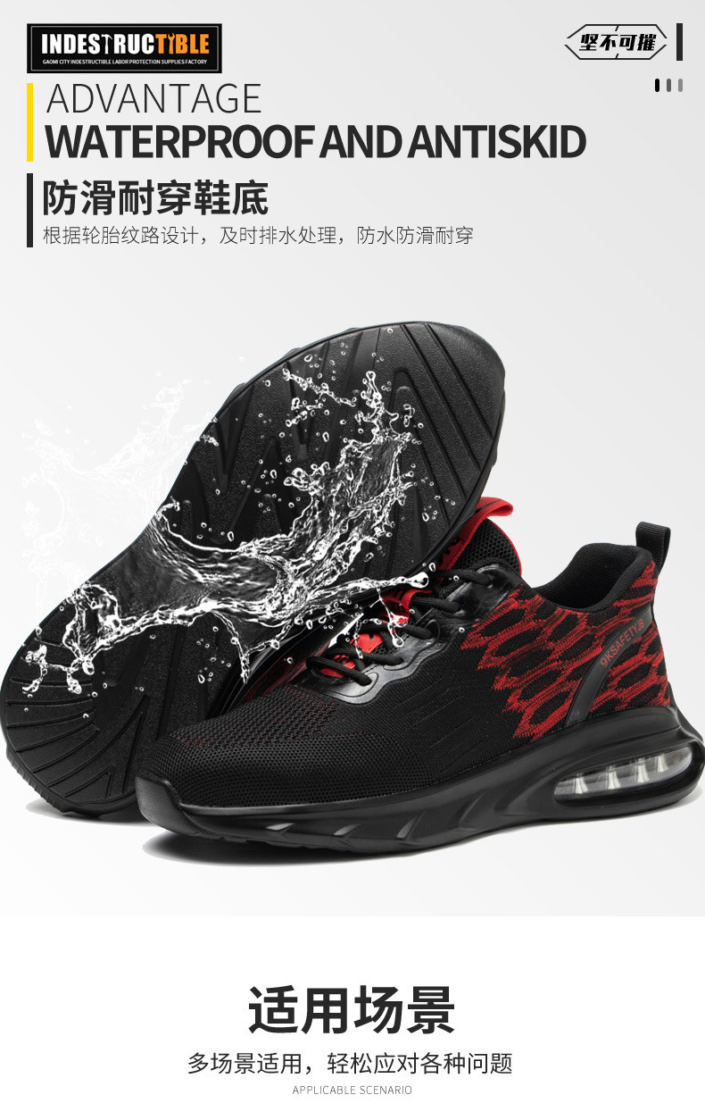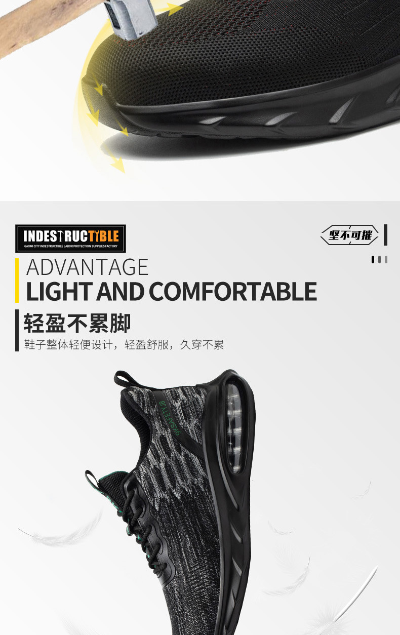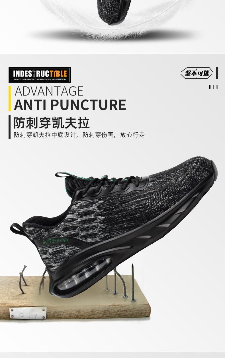 气垫底缓震耐磨鞋防砸防刺穿钢包头飞织劳保鞋跨境出口时尚安全鞋스토어 가기
