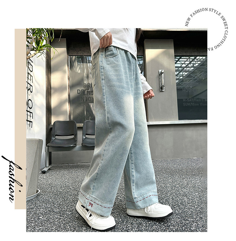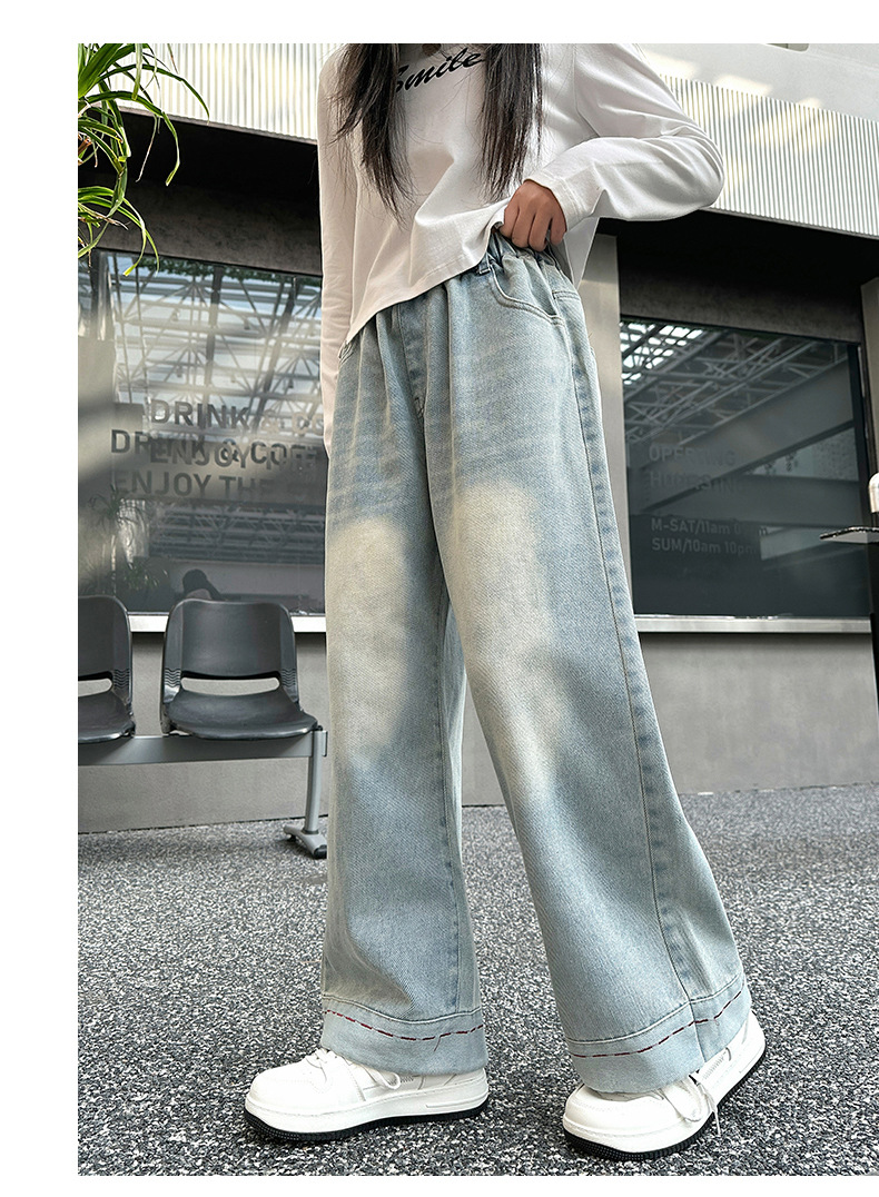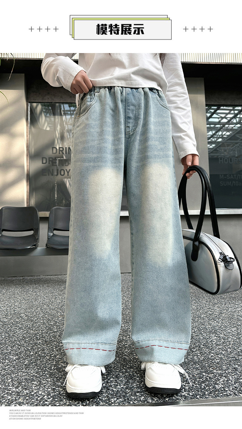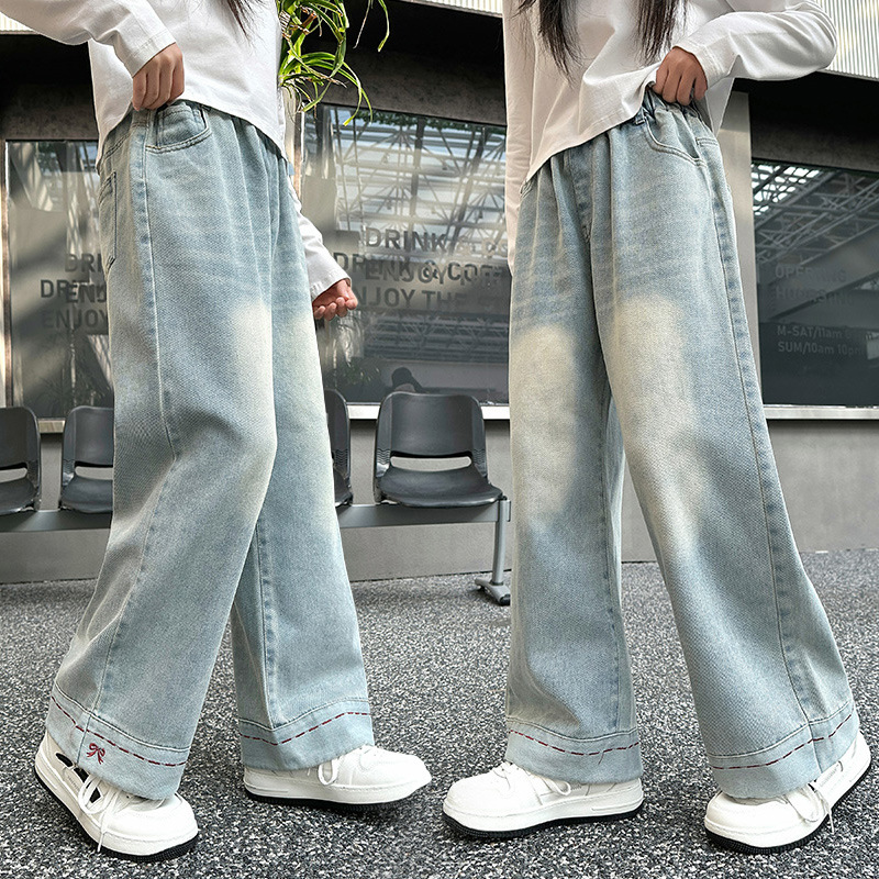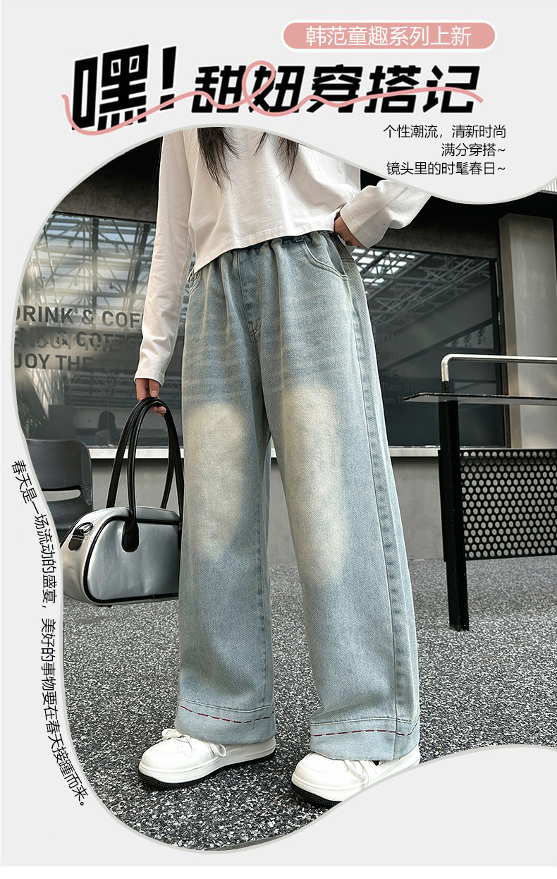 소녀 스트레이트 레그 청바지 봄과 가을 2025 새로운 봄 어린이 와이드 레그 팬츠 소녀 큰 어린이 바지 중학생스토어 가기