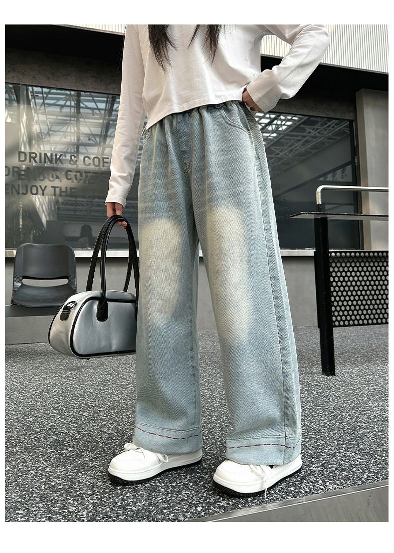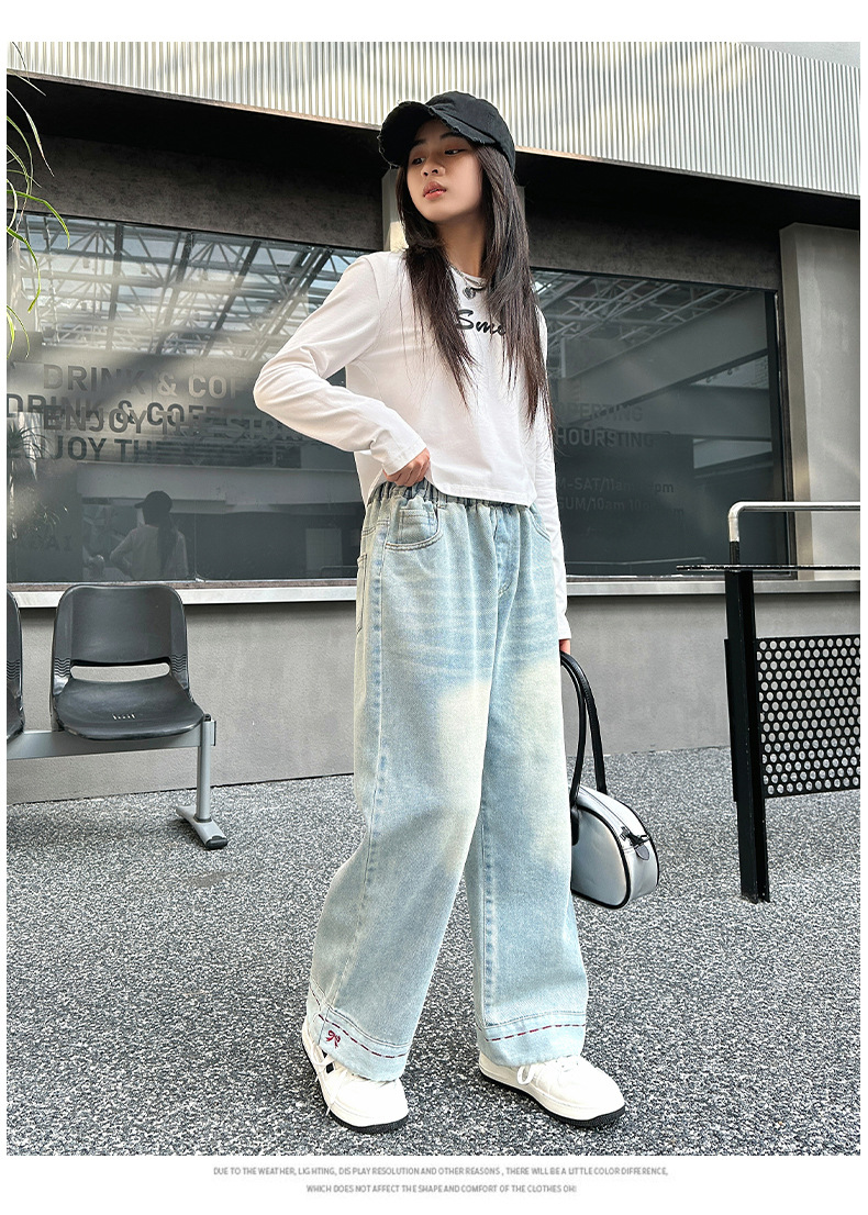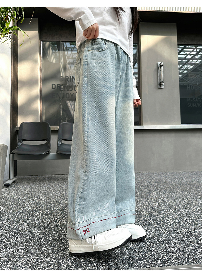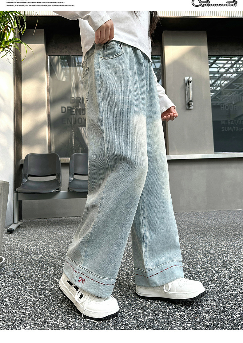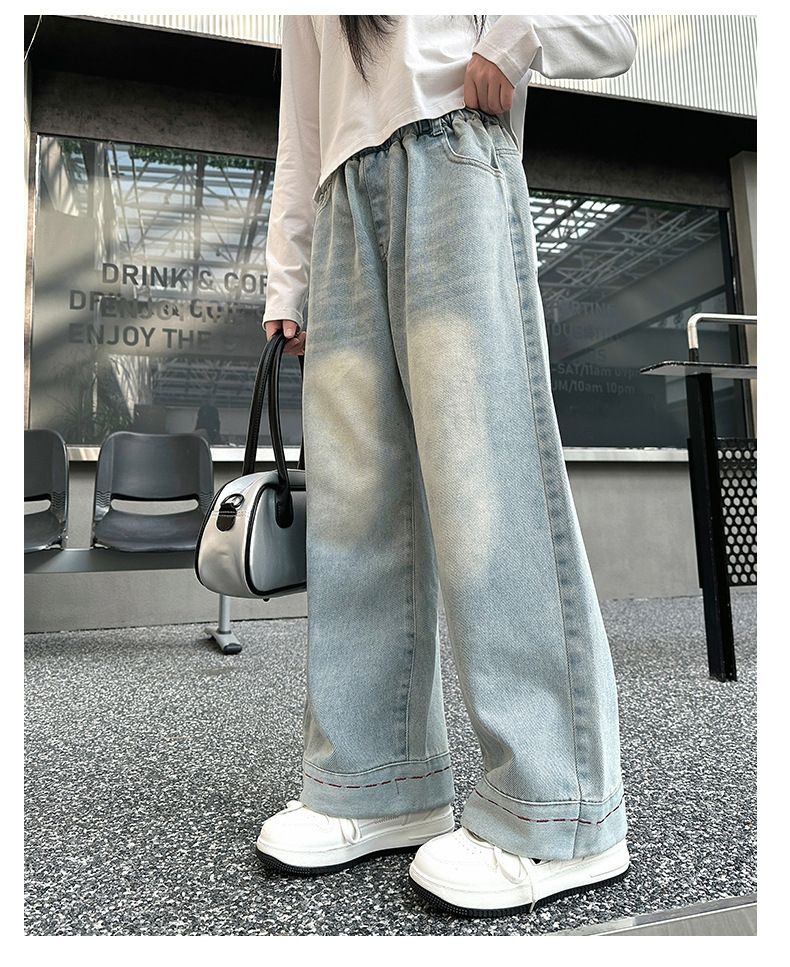 소녀 스트레이트 레그 청바지 봄과 가을 2025 새로운 봄 어린이 와이드 레그 팬츠 소녀 큰 어린이 바지 중학생스토어 가기