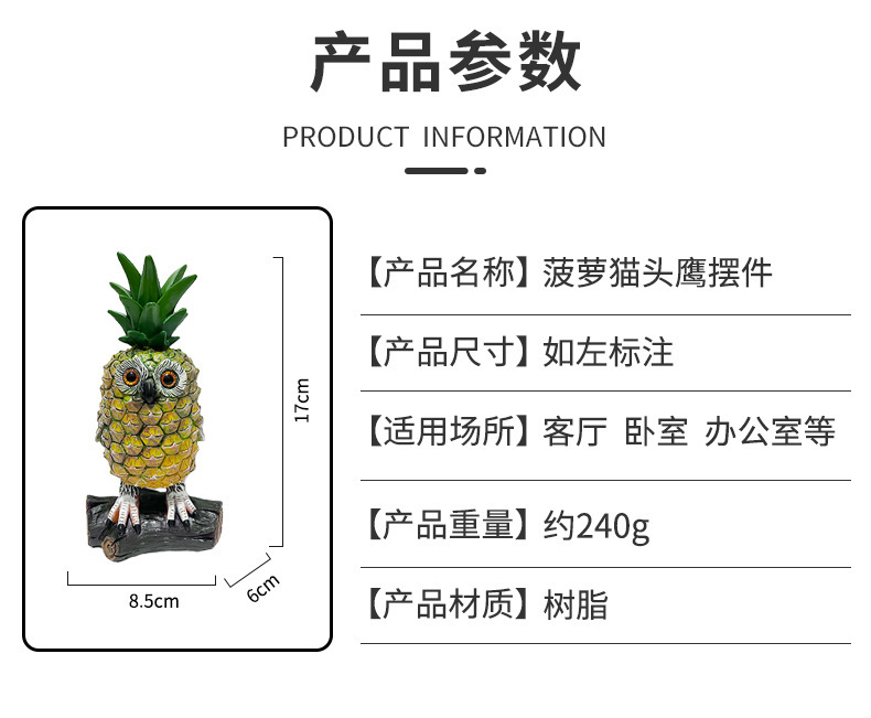 跨境新款变异菠萝猫头鹰小摆件动物家居桌面装饰品树脂摆件工艺品스토어 가기
