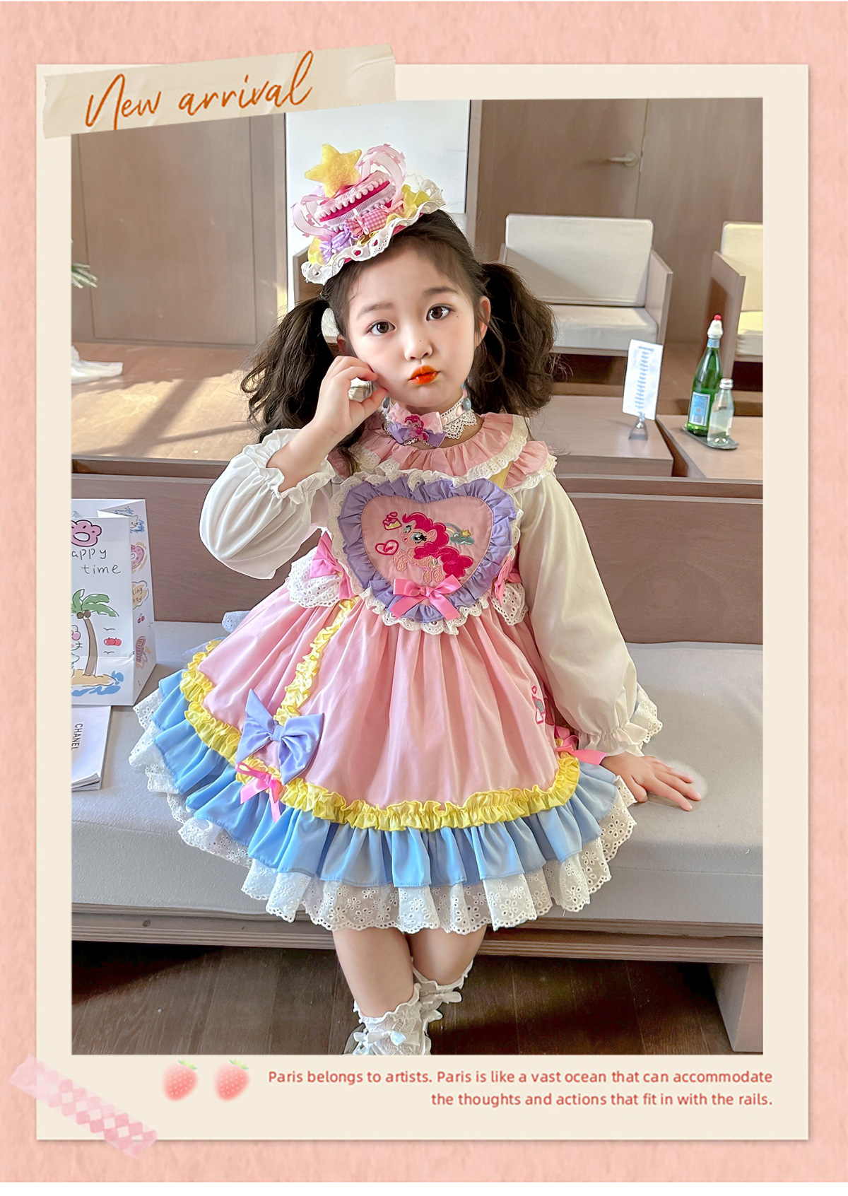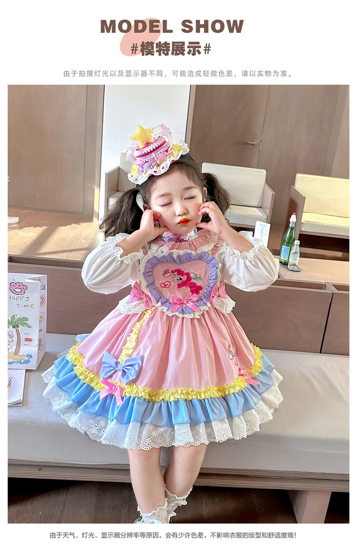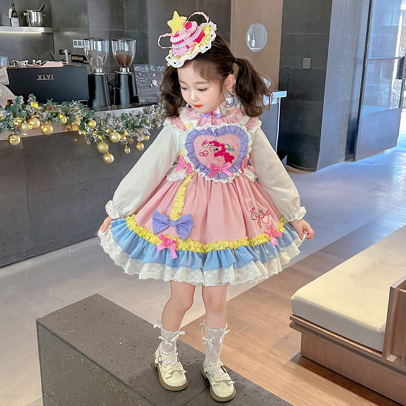 소녀 포니 로리타 원피스 2025 봄과 가을 새로운 아기 소녀 만화 생일 공주 치마스토어 가기