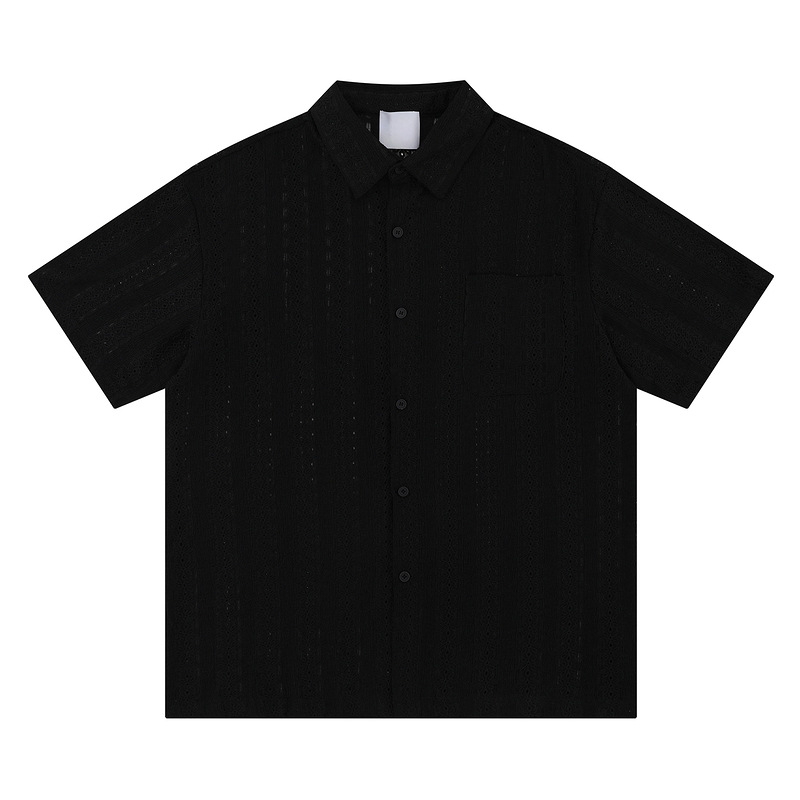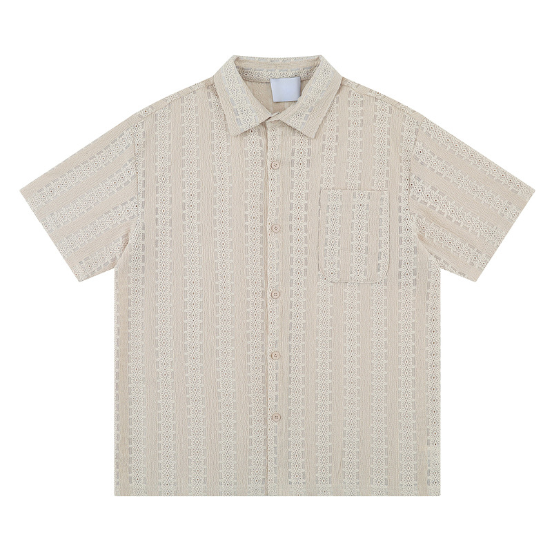 통기성 빛 전달 살구색 거품 모래 셔츠 짧은 소매 캐주얼 느슨한 주름 디자인 홍콩 스타일 착용 남성 반소매 셔츠스토어 가기