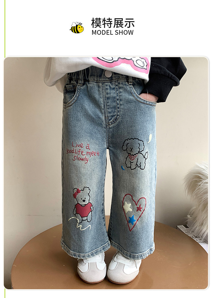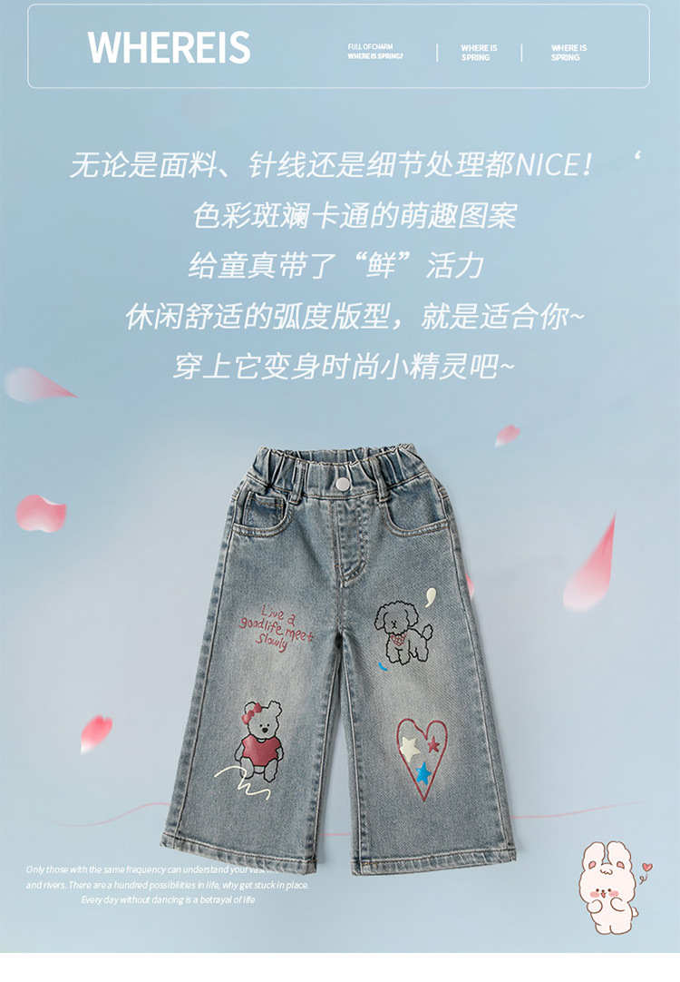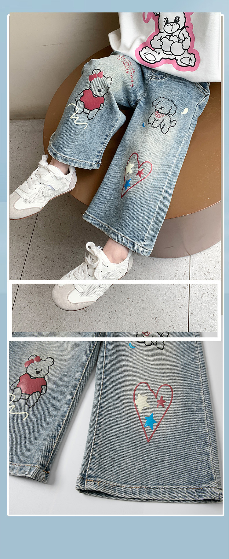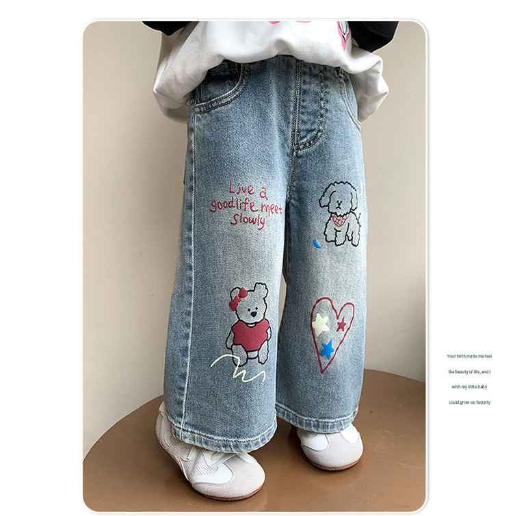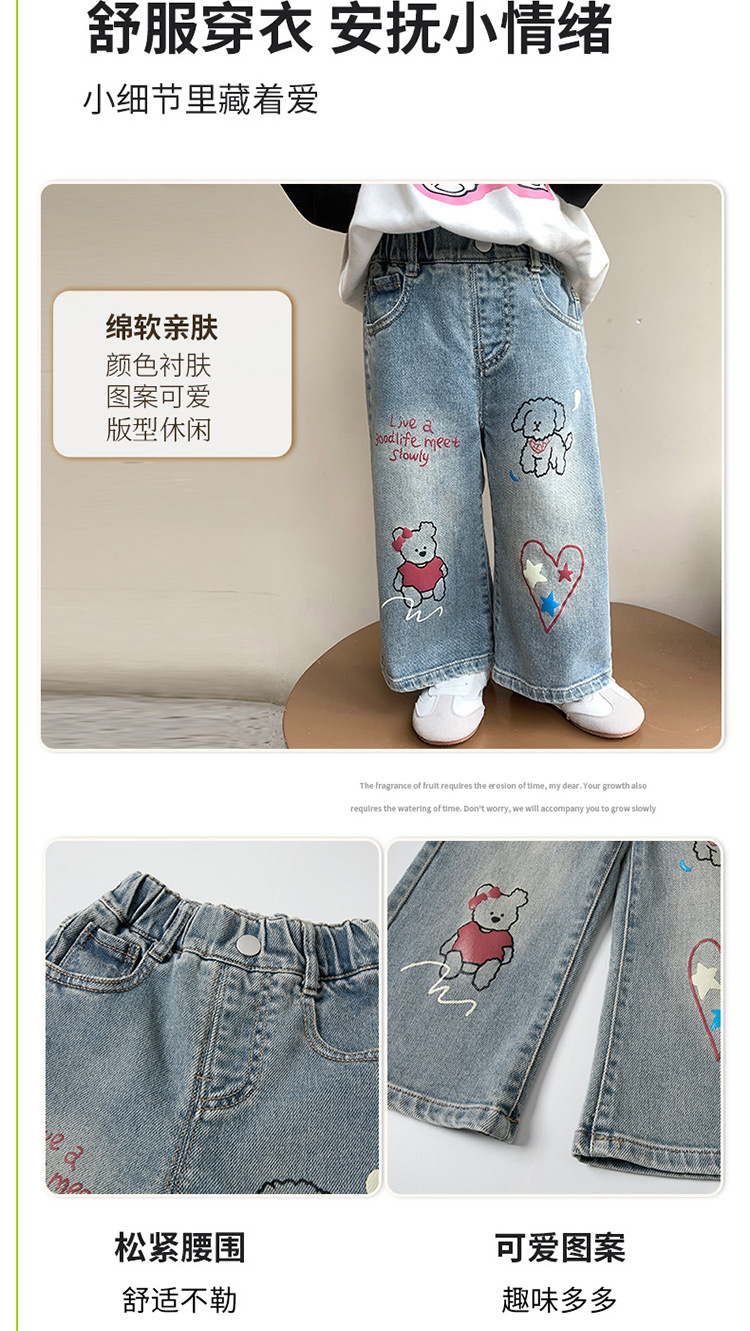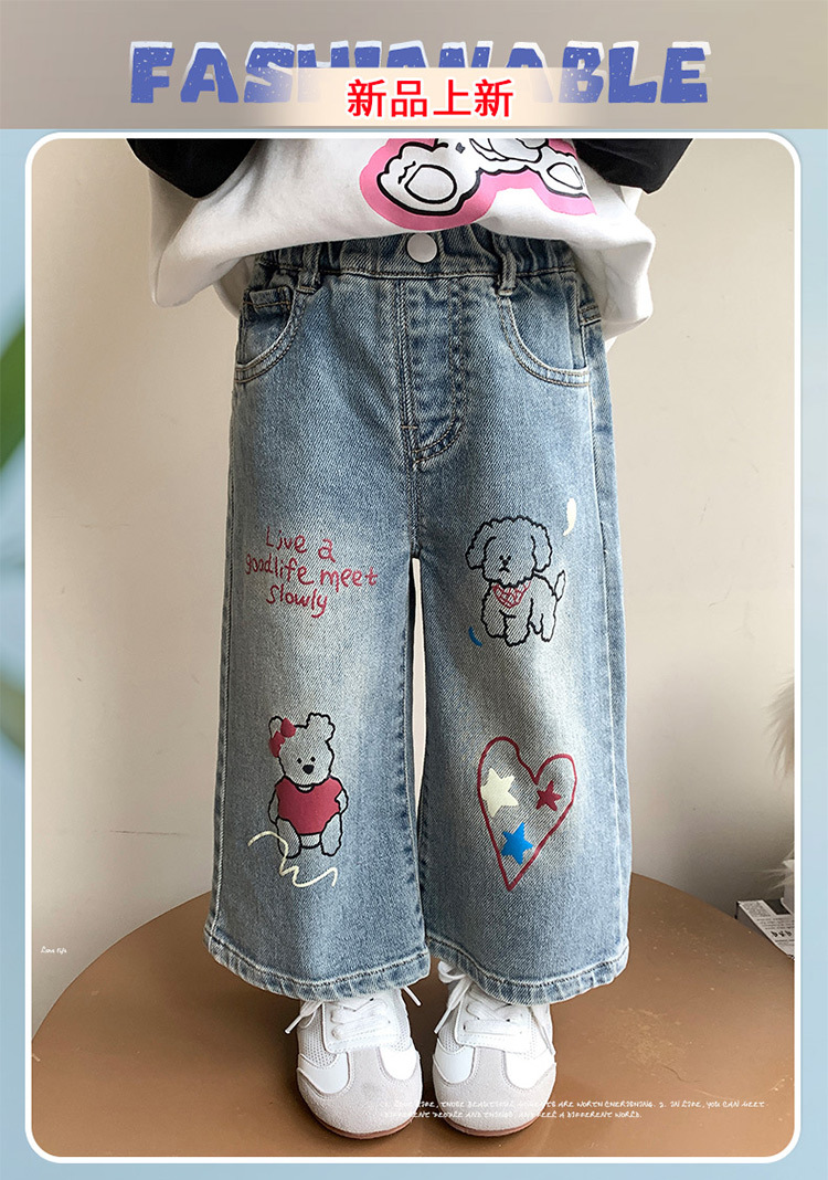 소녀의 사랑 청바지 봄과 가을 2025 새로운 패션 어린 소녀의 패셔너블 루즈 바지 어린이 바지스토어 가기