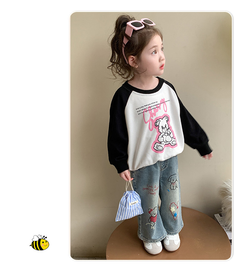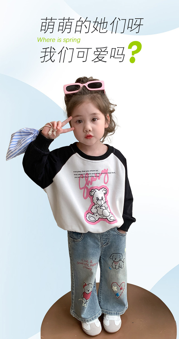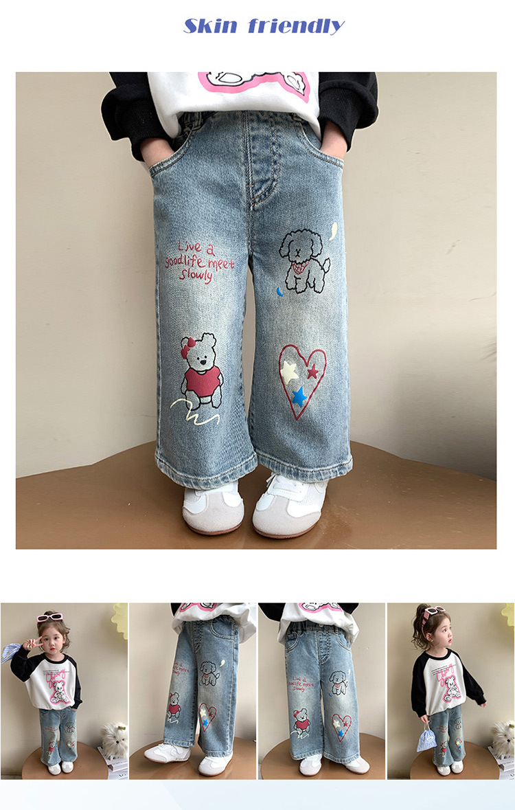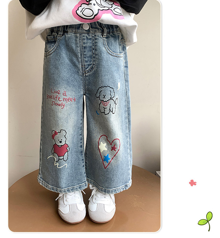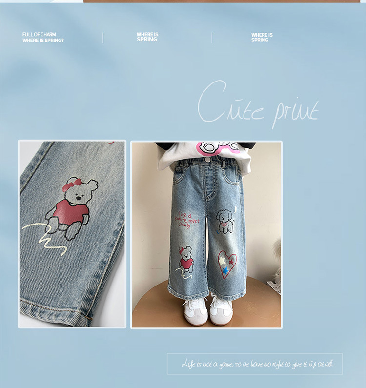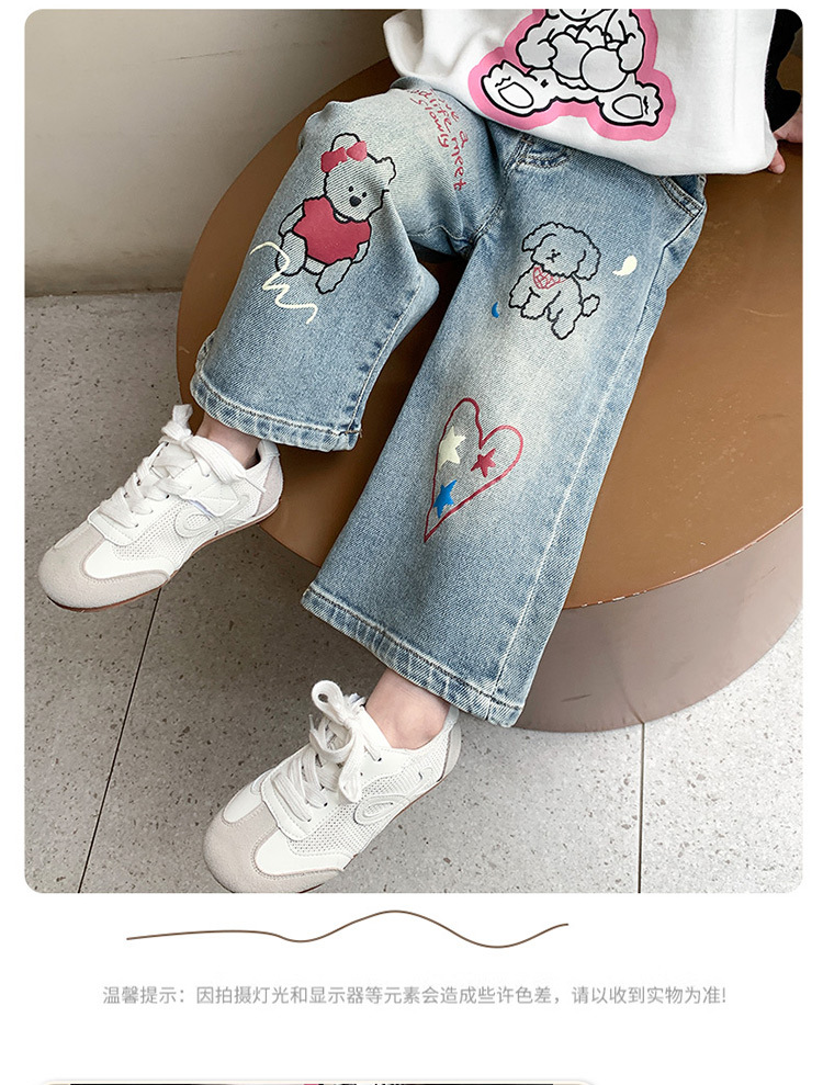 소녀의 사랑 청바지 봄과 가을 2025 새로운 패션 어린 소녀의 패셔너블 루즈 바지 어린이 바지스토어 가기