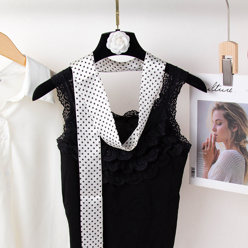 2025 한국식 폴도트 실크 스카프 목 밴드 타이 헤어 여성 고급 스카프 가을과 겨울 얇은 목 보호 스카프 긴 스트립