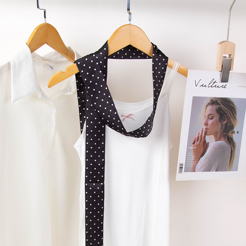 2025 한국식 폴도트 실크 스카프 목 밴드 타이 헤어 여성 고급 스카프 가을과 겨울 얇은 목 보호 스카프 긴 스트립스토어 가기