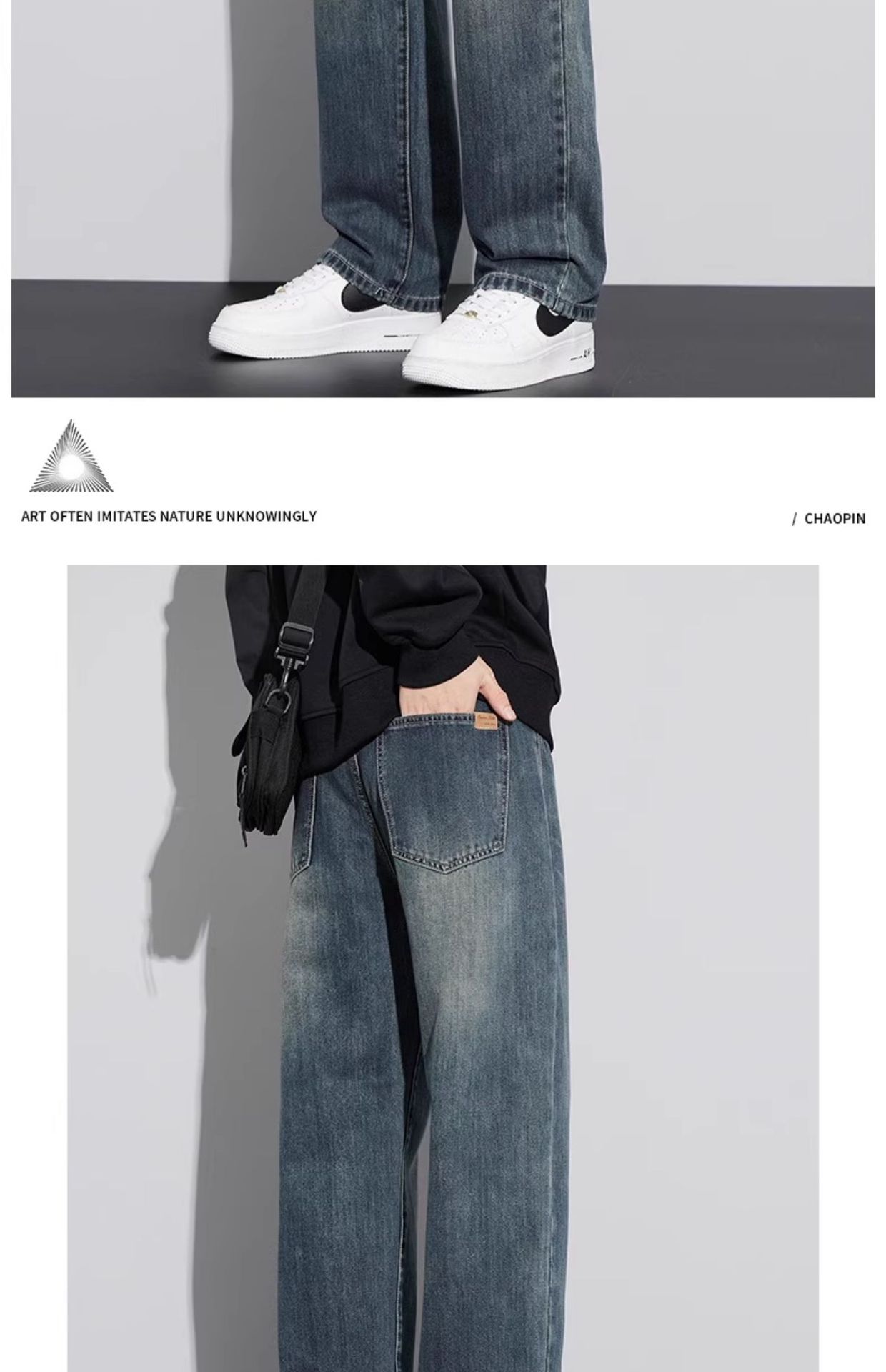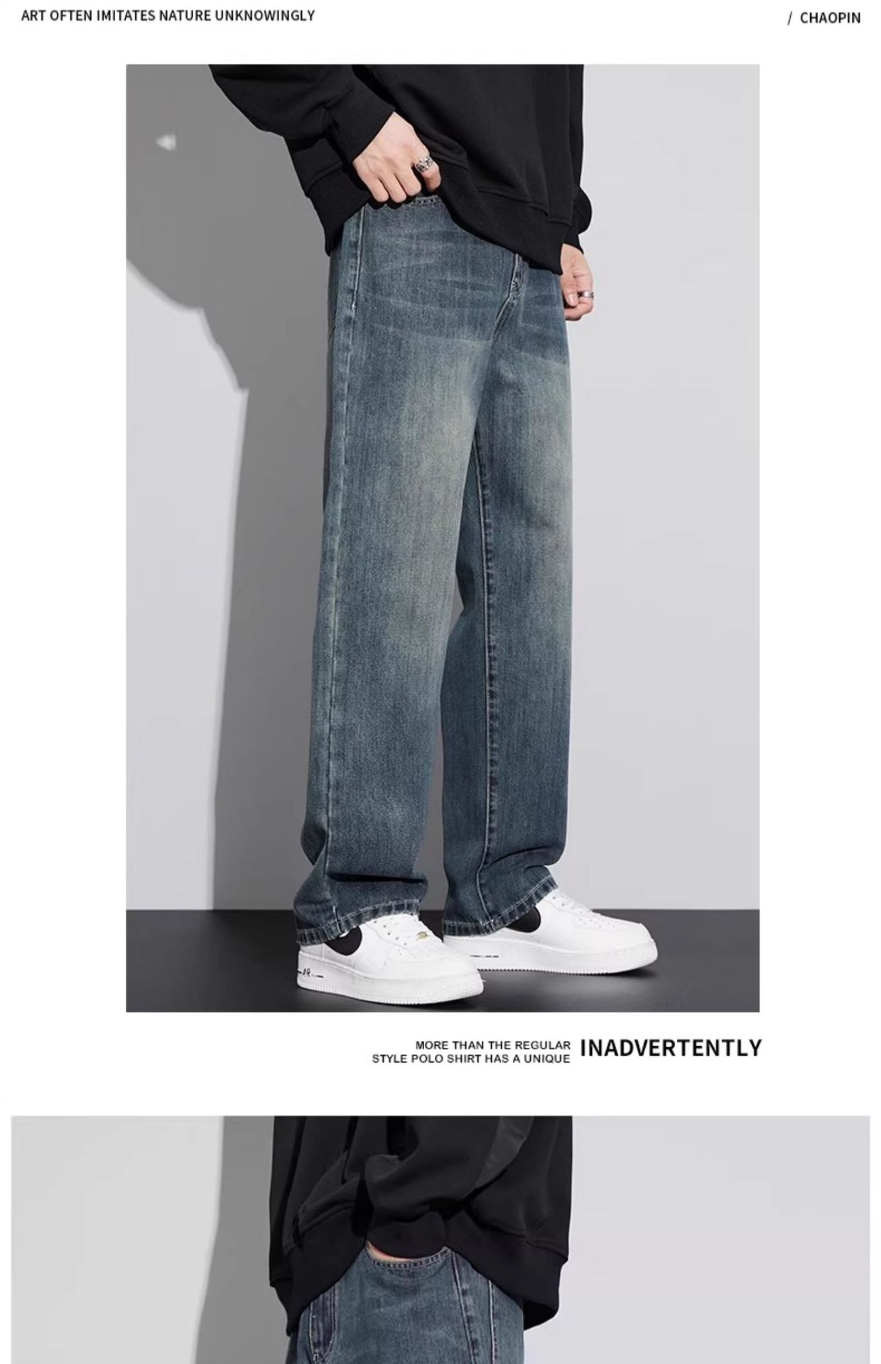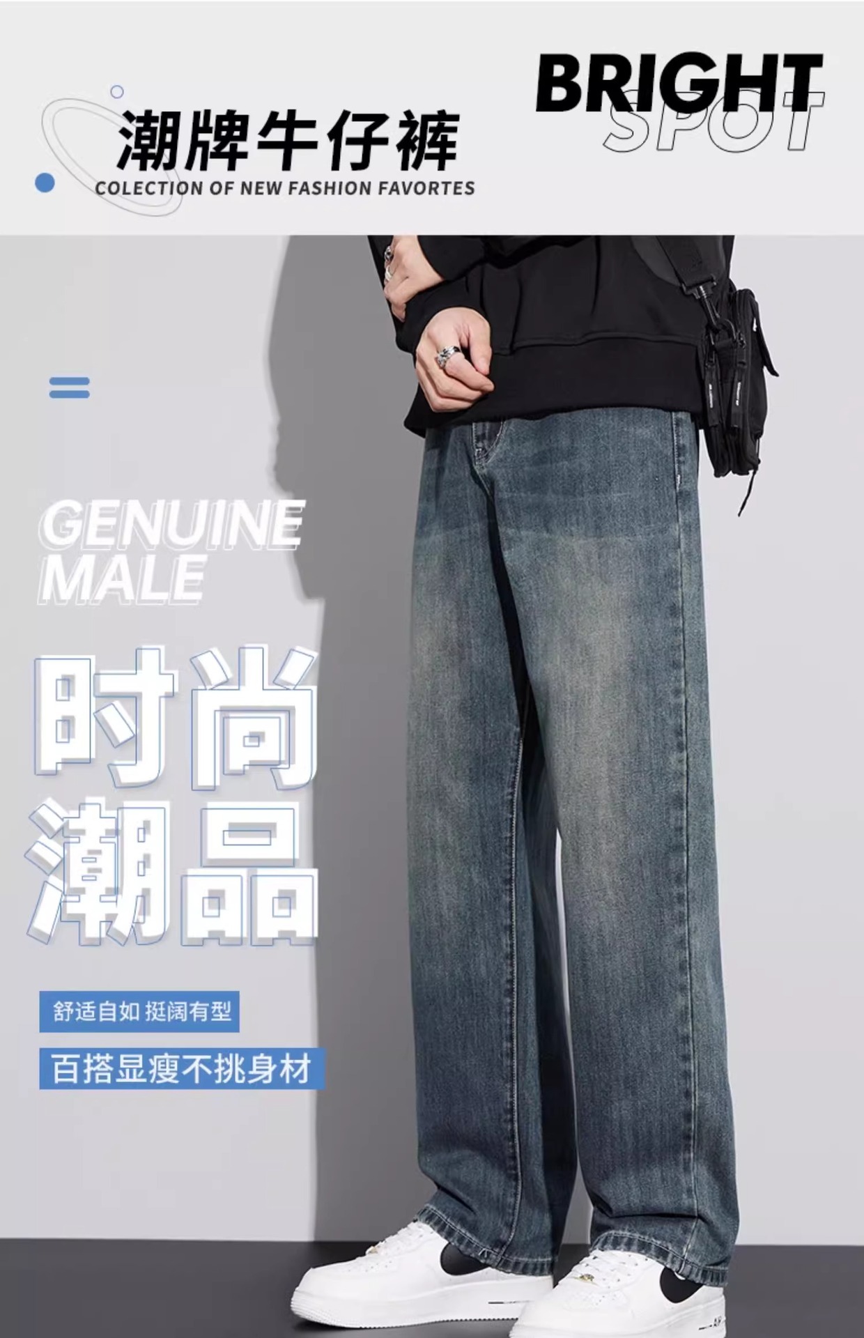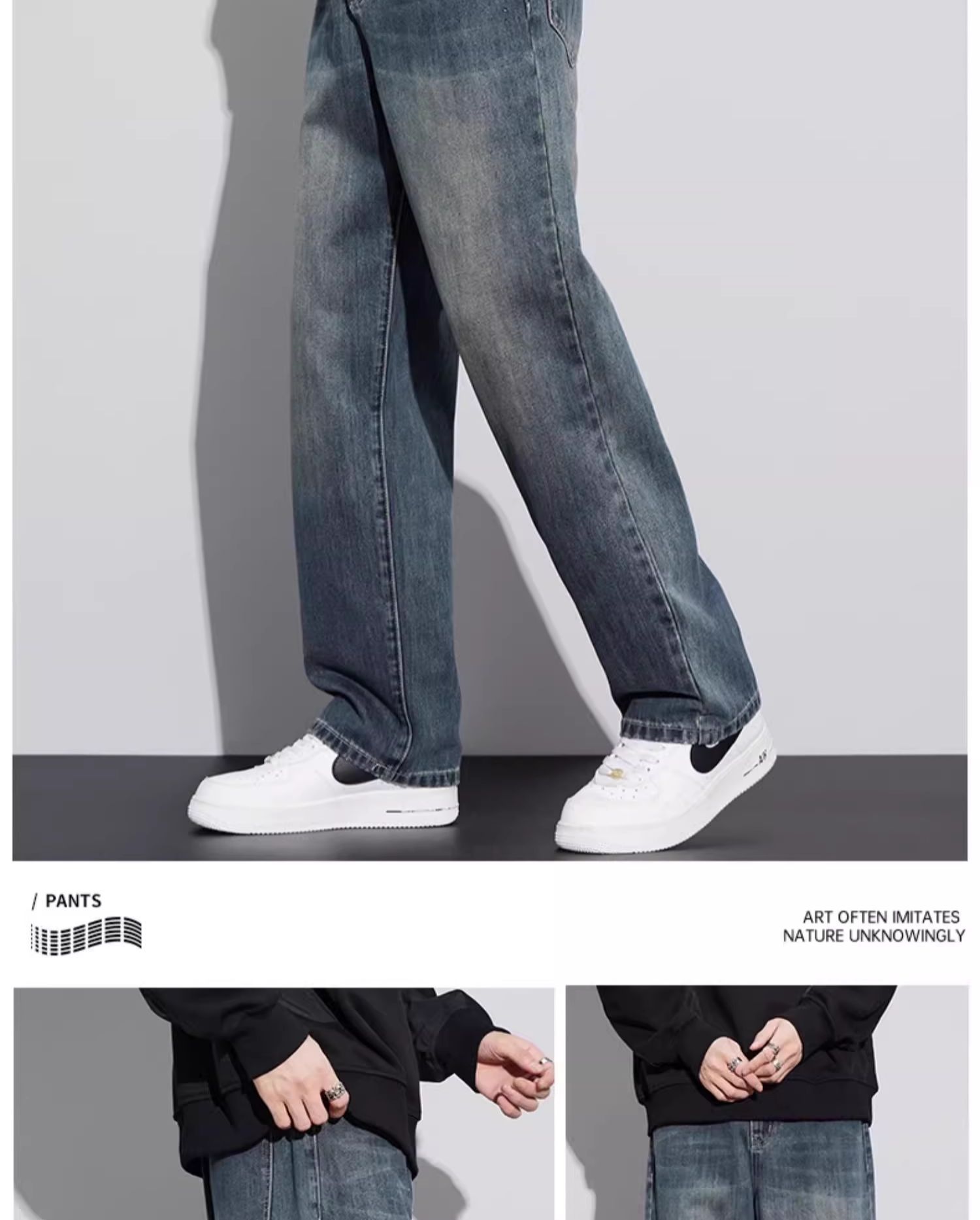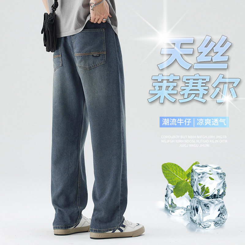 미국 레트로 스타일 와이드 레그 청바지 남성복 2025 가을 겨울 기모 트렌디 브랜드 루즈핏 스트레이트 남성 캐주얼 롱 팬츠스토어 가기