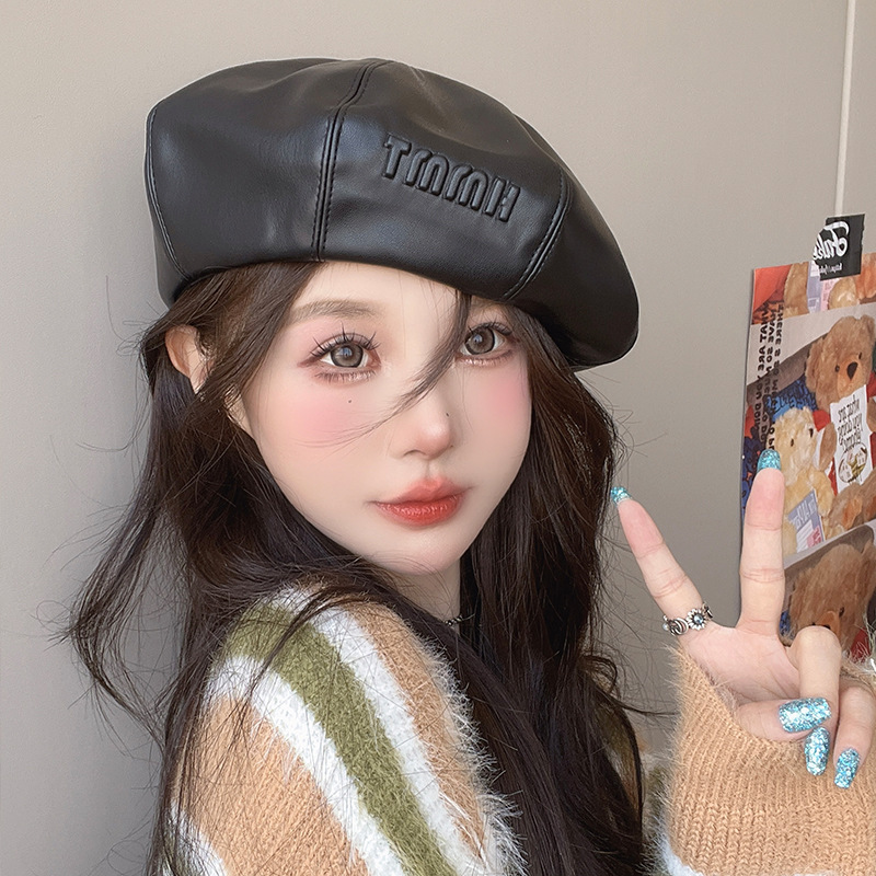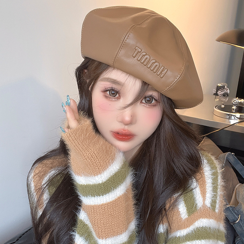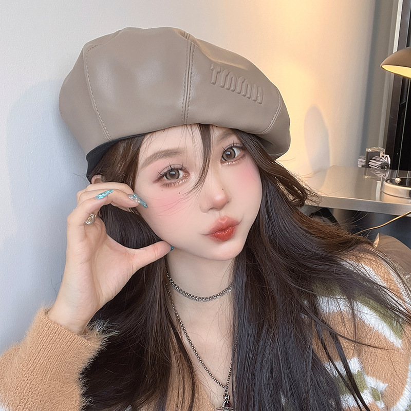 야외 여행을 위한 여성용 새 스타일 베레모, 작은 가죽, 큰 머리 둘레, 가을 겨울 여성용 캐주얼하고 다재다능한 화가 모자스토어 가기