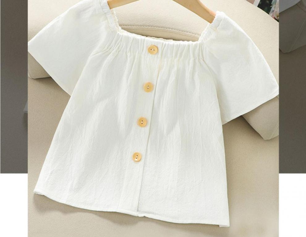 여자 짧은 여름 짧은 2023 새로운 여름 탑 큰 어린이 소녀의 면화 코트 화이트 T 느슨한 쿨스토어 가기