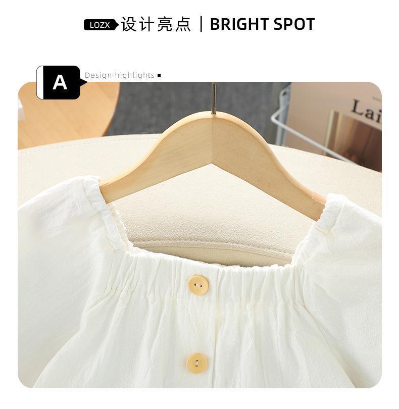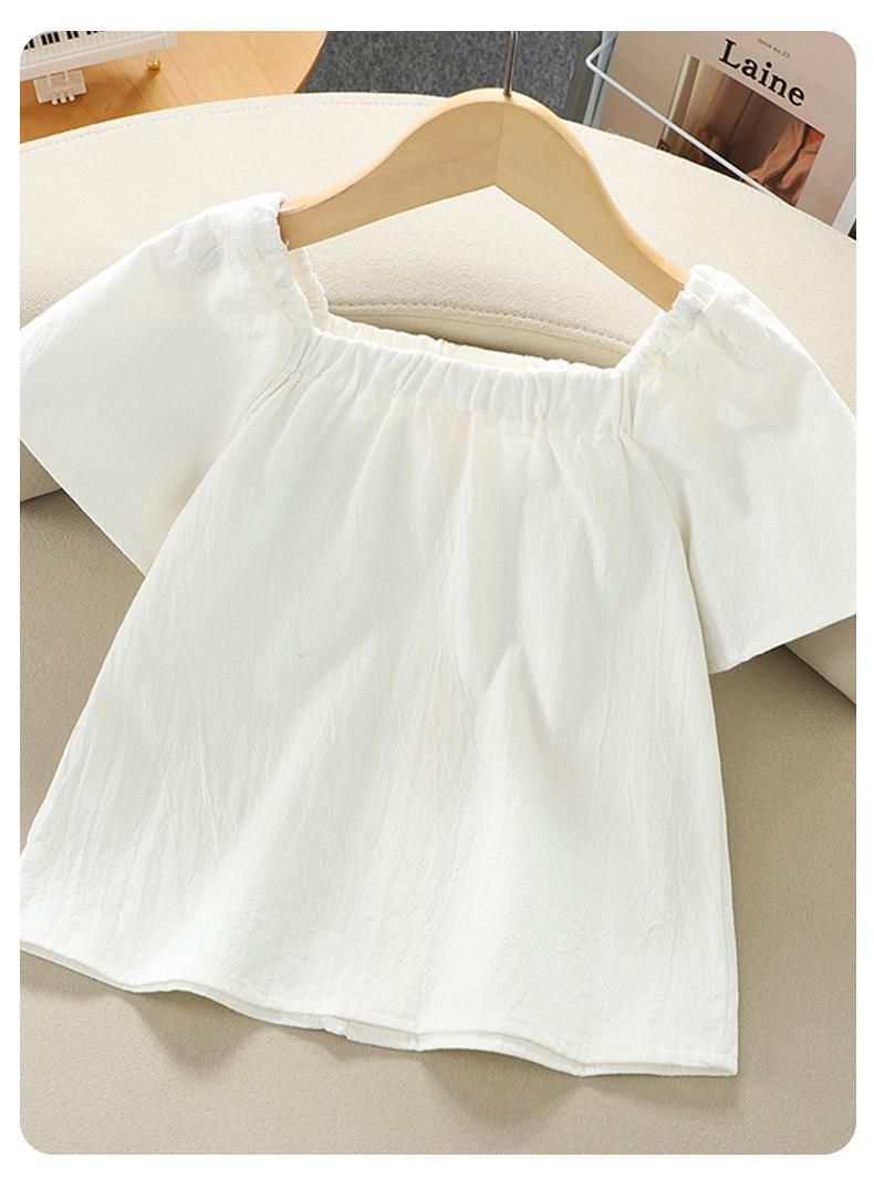 여자 짧은 여름 짧은 2023 새로운 여름 탑 큰 어린이 소녀의 면화 코트 화이트 T 느슨한 쿨