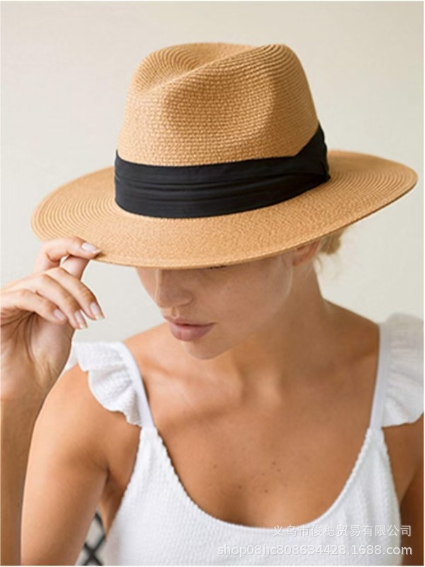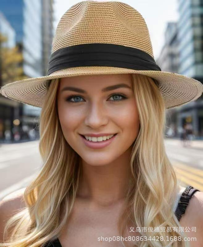 아마존 밀짚 모자 유럽과 미국 스타일의 플랫 브림 재즈 탑 모자 남자와 여자 올 매치 파나마 여름 여행 햇살스토어 가기
