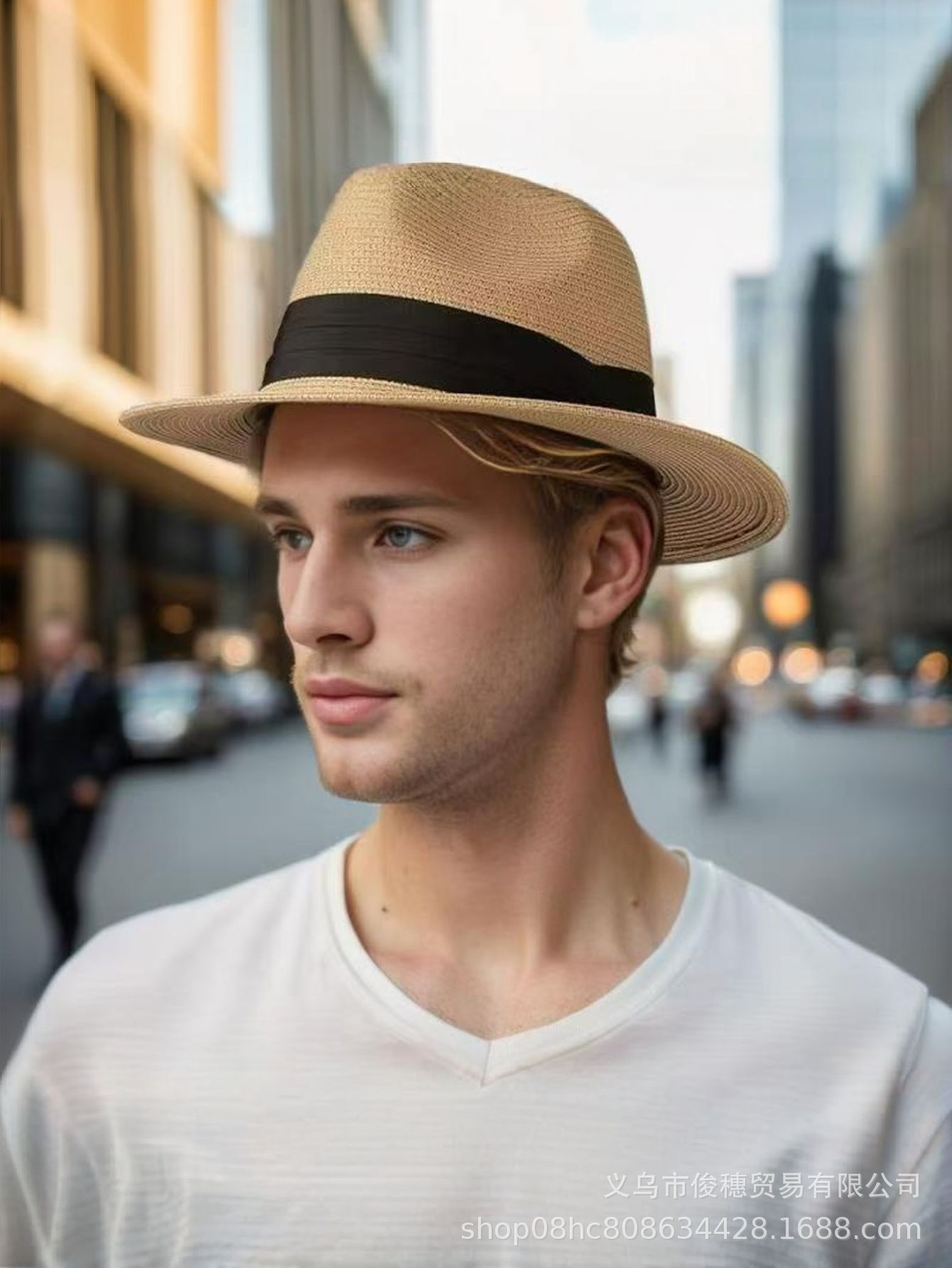 아마존 밀짚 모자 유럽과 미국 스타일의 플랫 브림 재즈 탑 모자 남자와 여자 올 매치 파나마 여름 여행 햇살