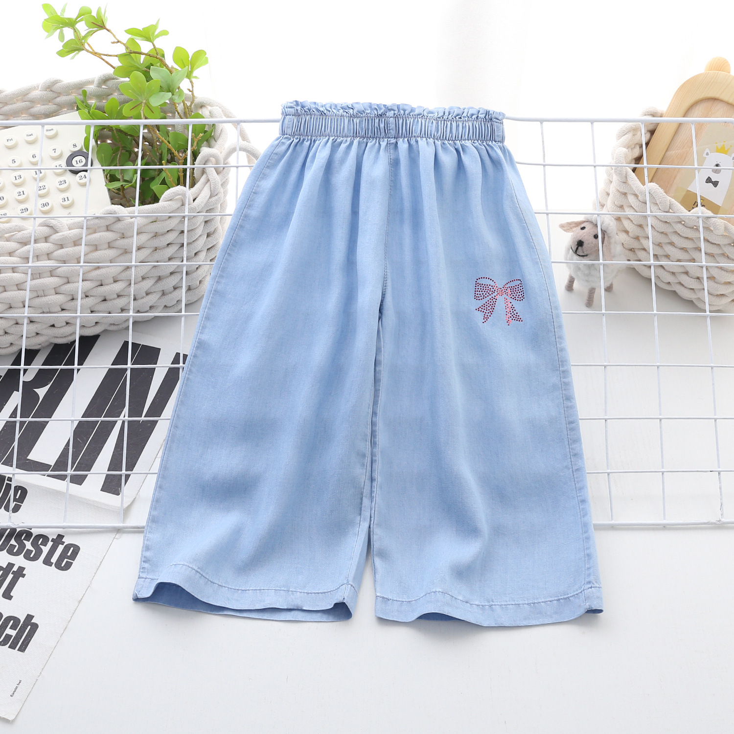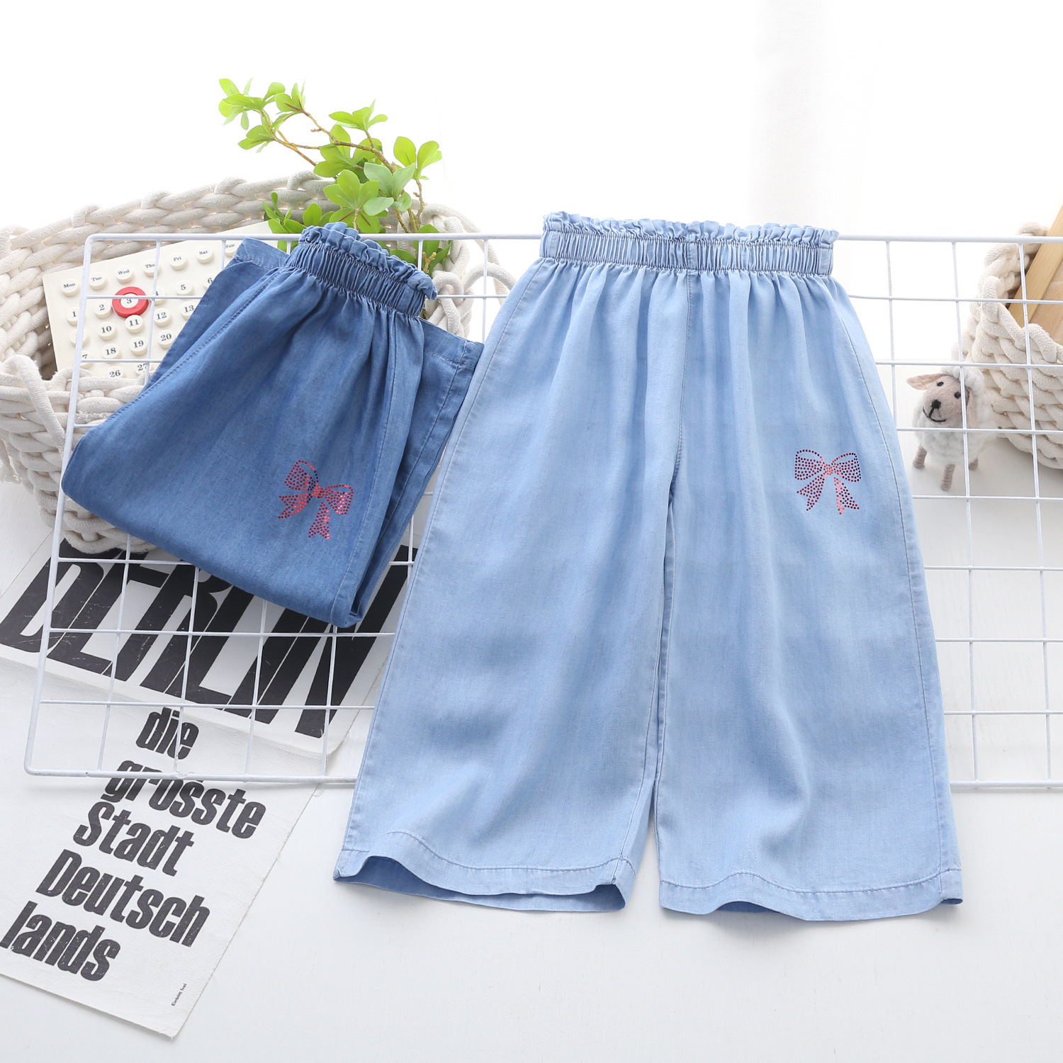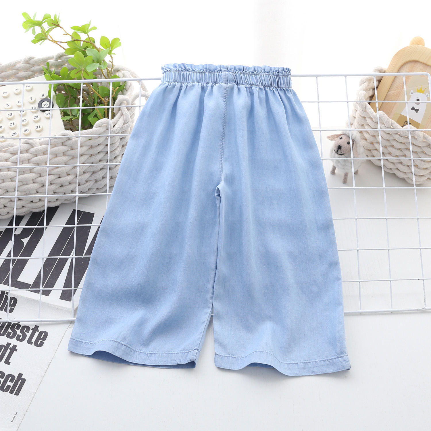 여름 여자 텐셀 데님 와이드 레그 팬츠 100-170 한국 얇은 와이드 레그 팬츠 소녀 크롭 팬츠
