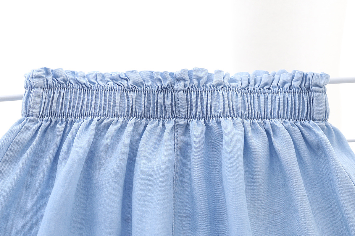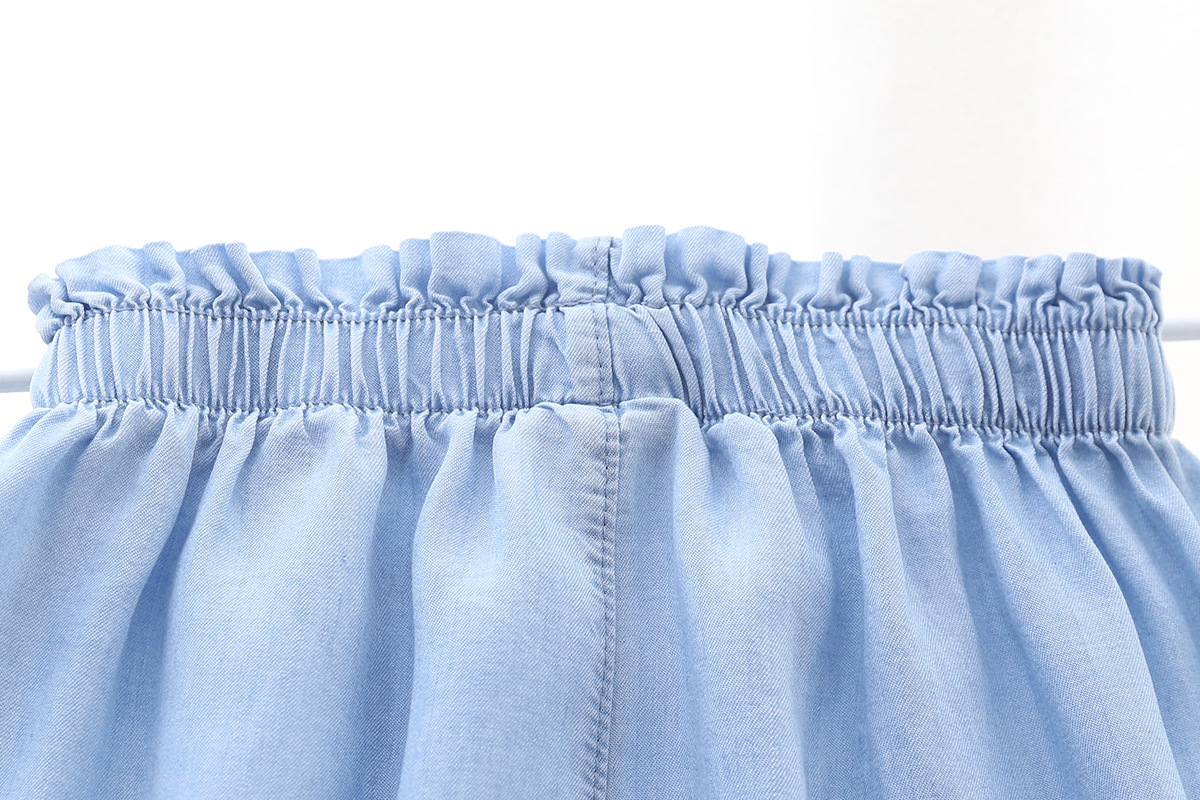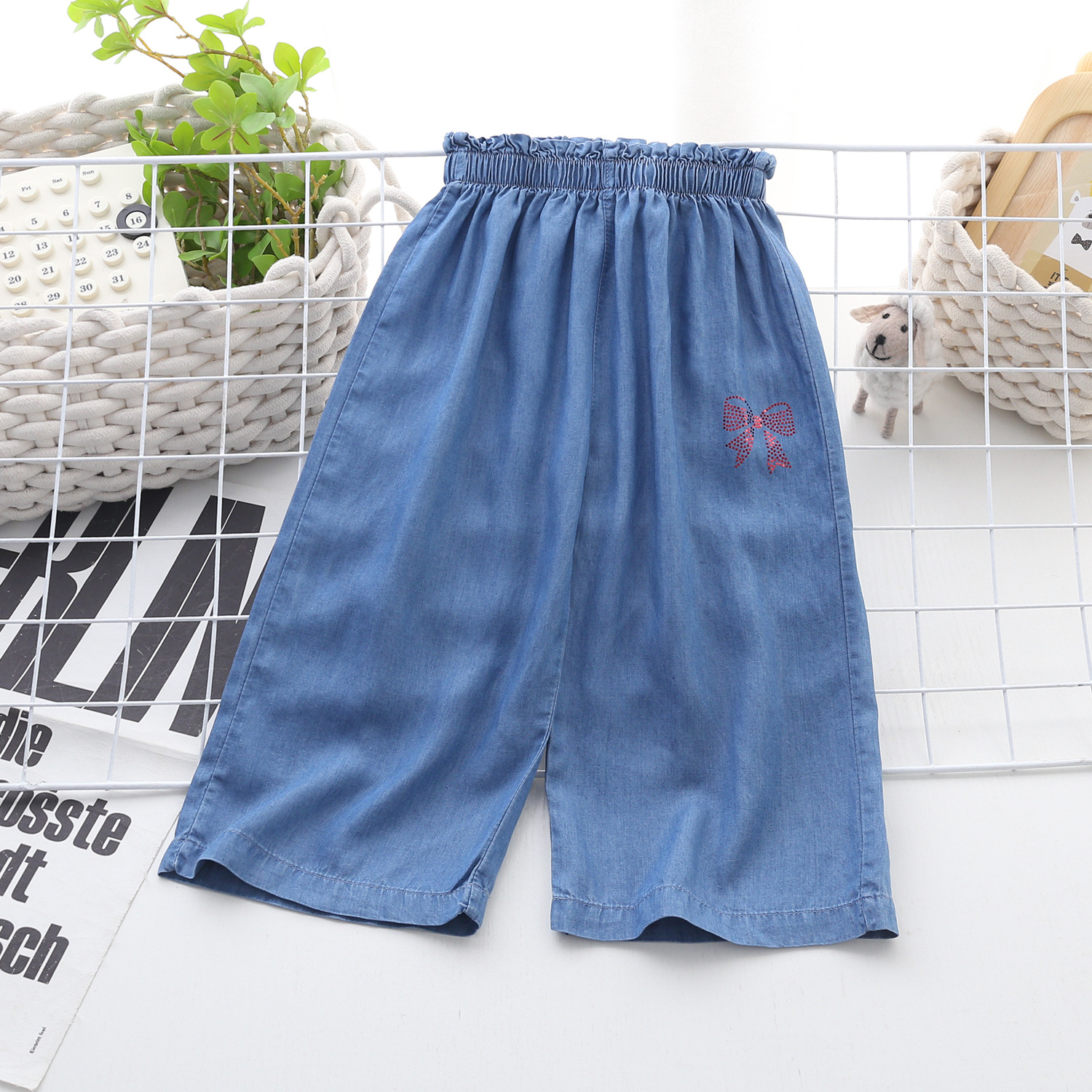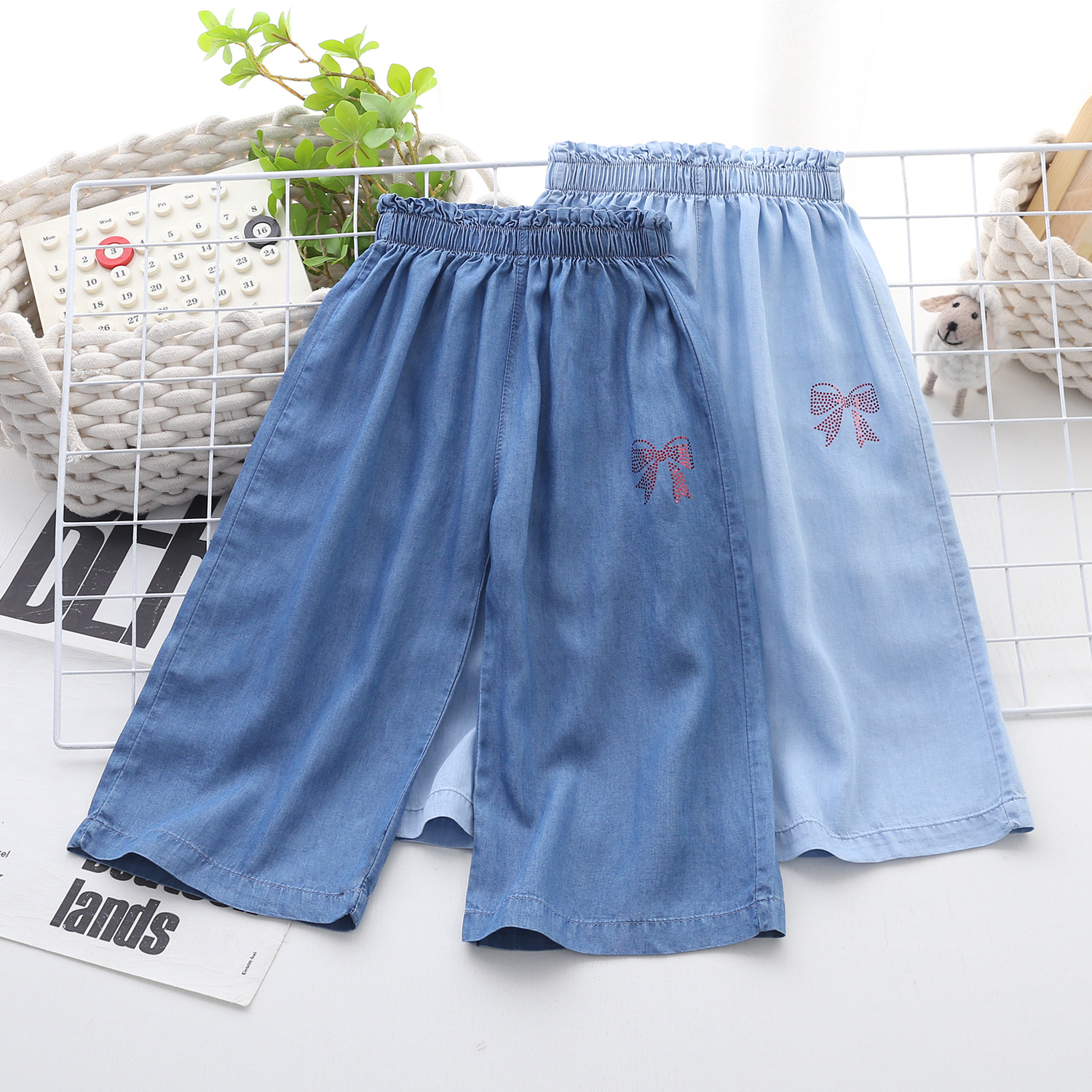 여름 여자 텐셀 데님 와이드 레그 팬츠 100-170 한국 얇은 와이드 레그 팬츠 소녀 크롭 팬츠