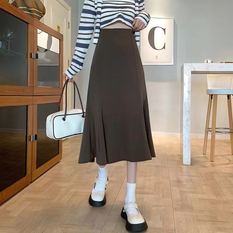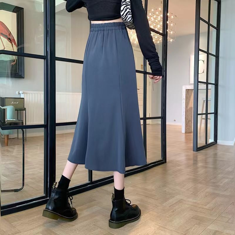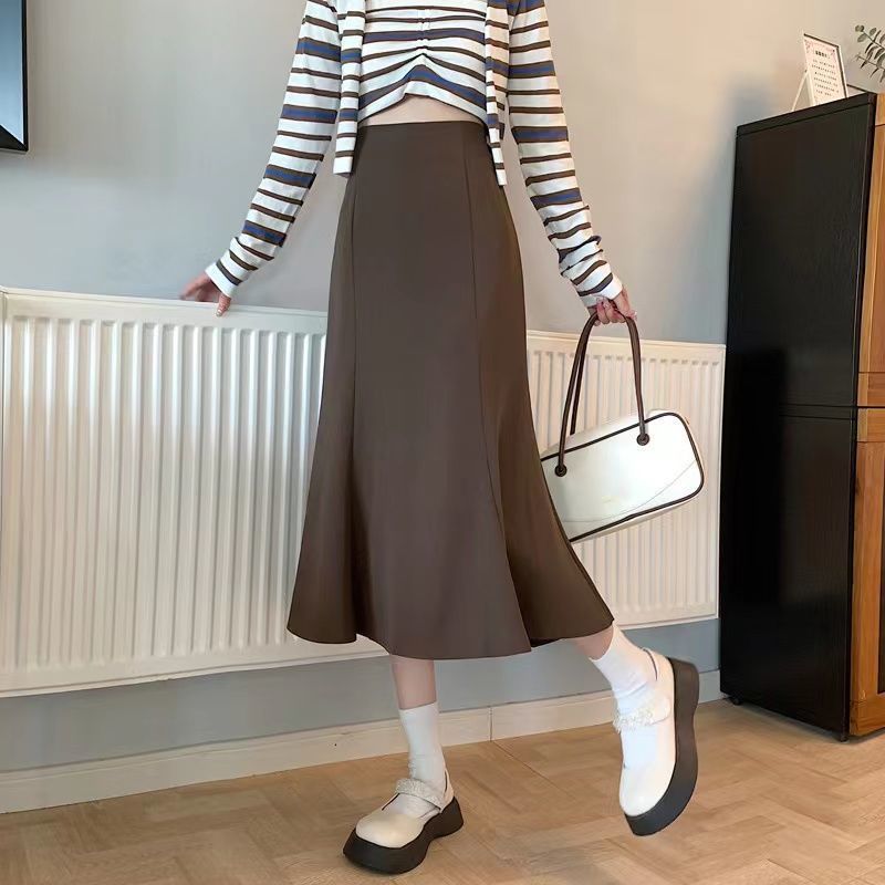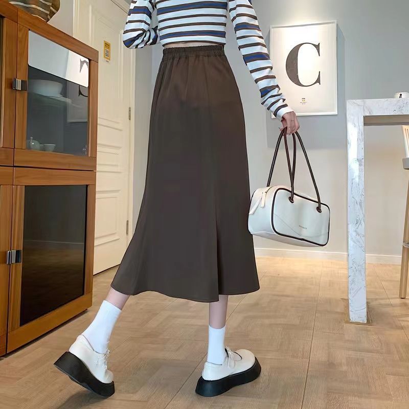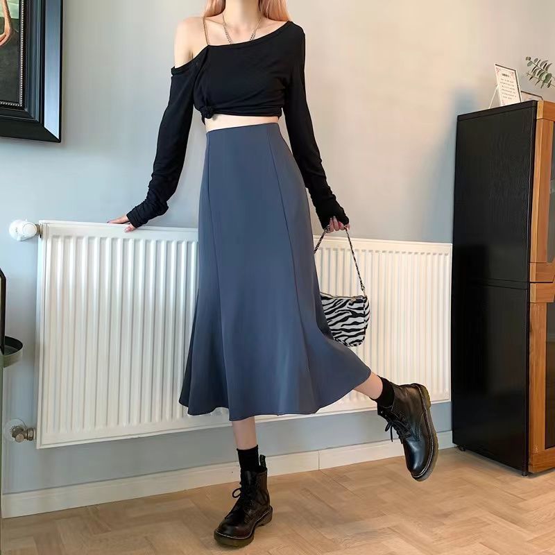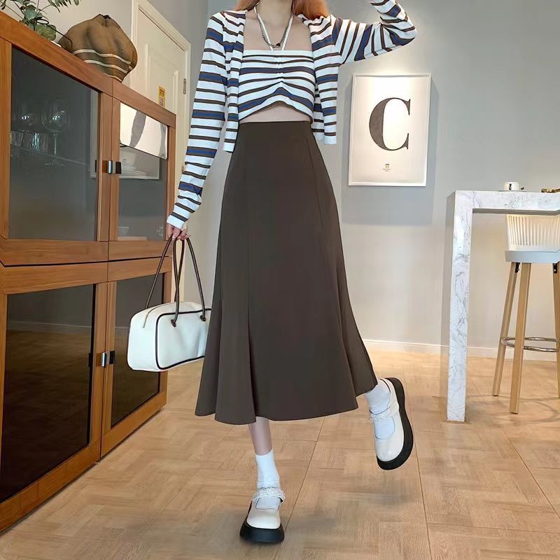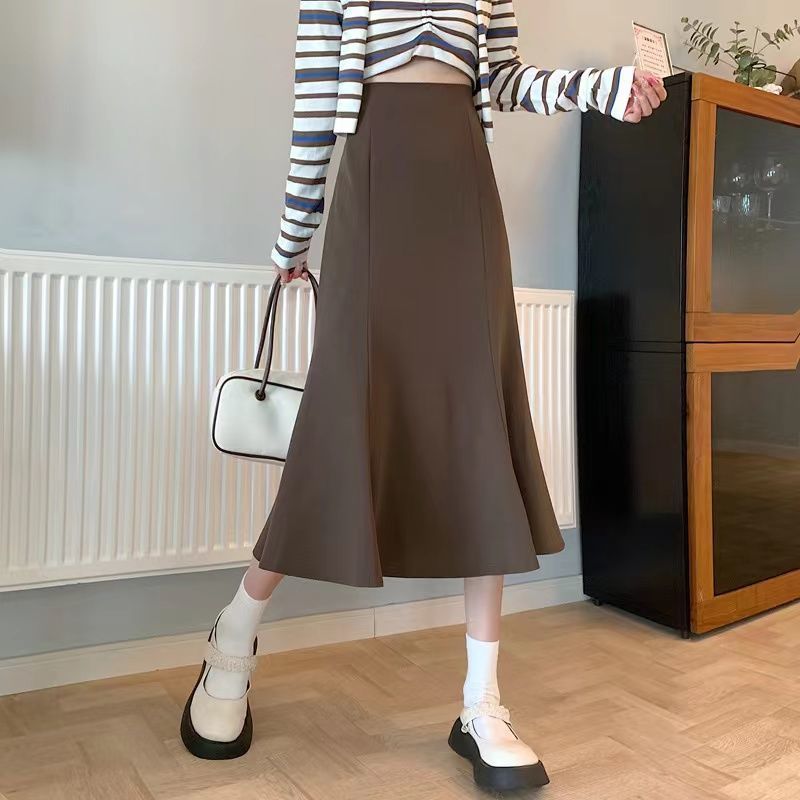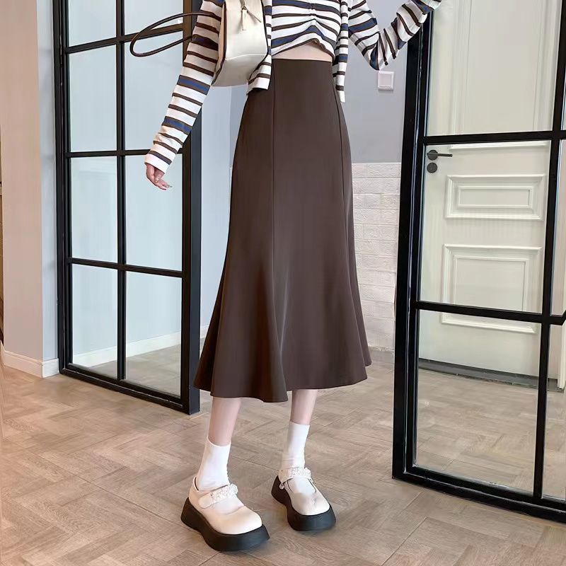검은 세트 치마 여성의 봄 새로운 높은 허리 엉덩이 커버 슬림 A 라인 엉덩이 피쉬 스커트 중간 길이 스커트스토어 가기