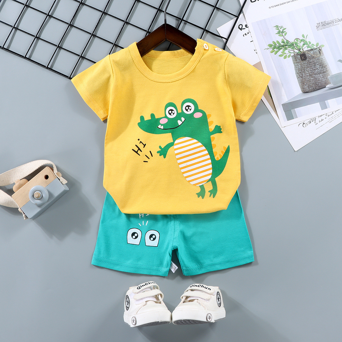 여름 짧은 소매 티셔츠 반바지 면화 아기 옷 소년과 소녀 캐주얼 투피스 양복 도매스토어 가기