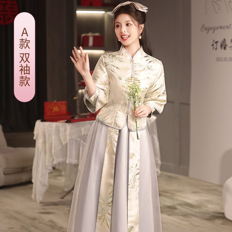 새로운 중국 신부 들러리 원피스 2024 얇은 사계절 중국 스타일 웨딩 Xiuhe 슬리밍 자매 원피스 신부 들러리 원피스스토어 가기