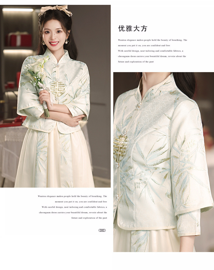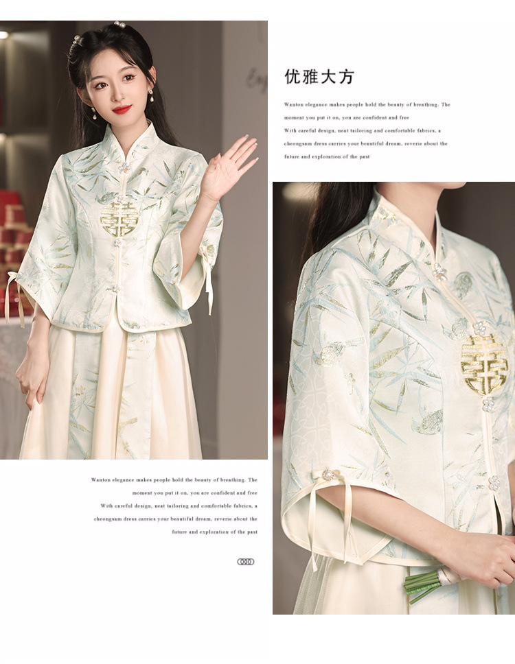 • 중국식 샴페인 대나무 새 소매 A 더블 슬리브 스타일