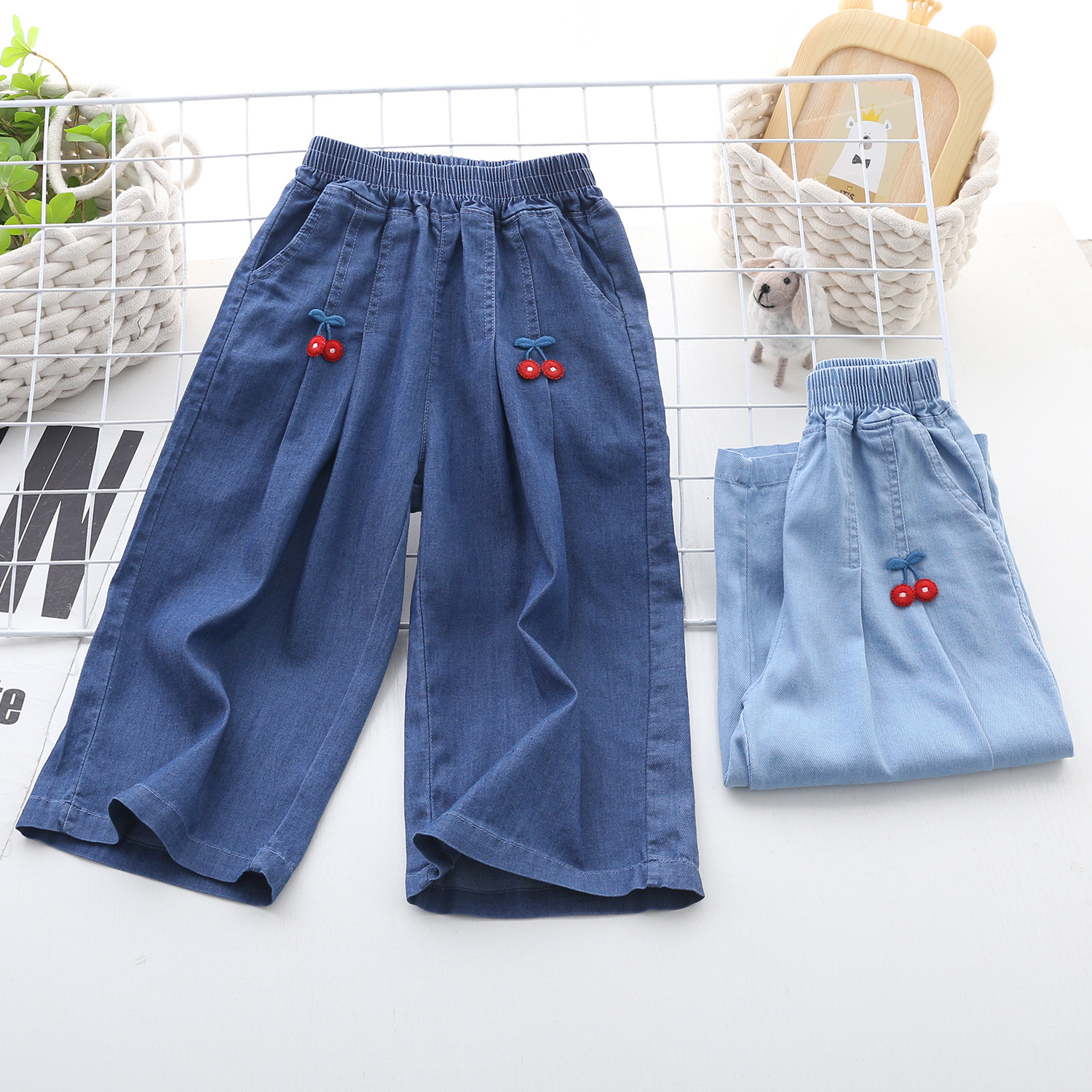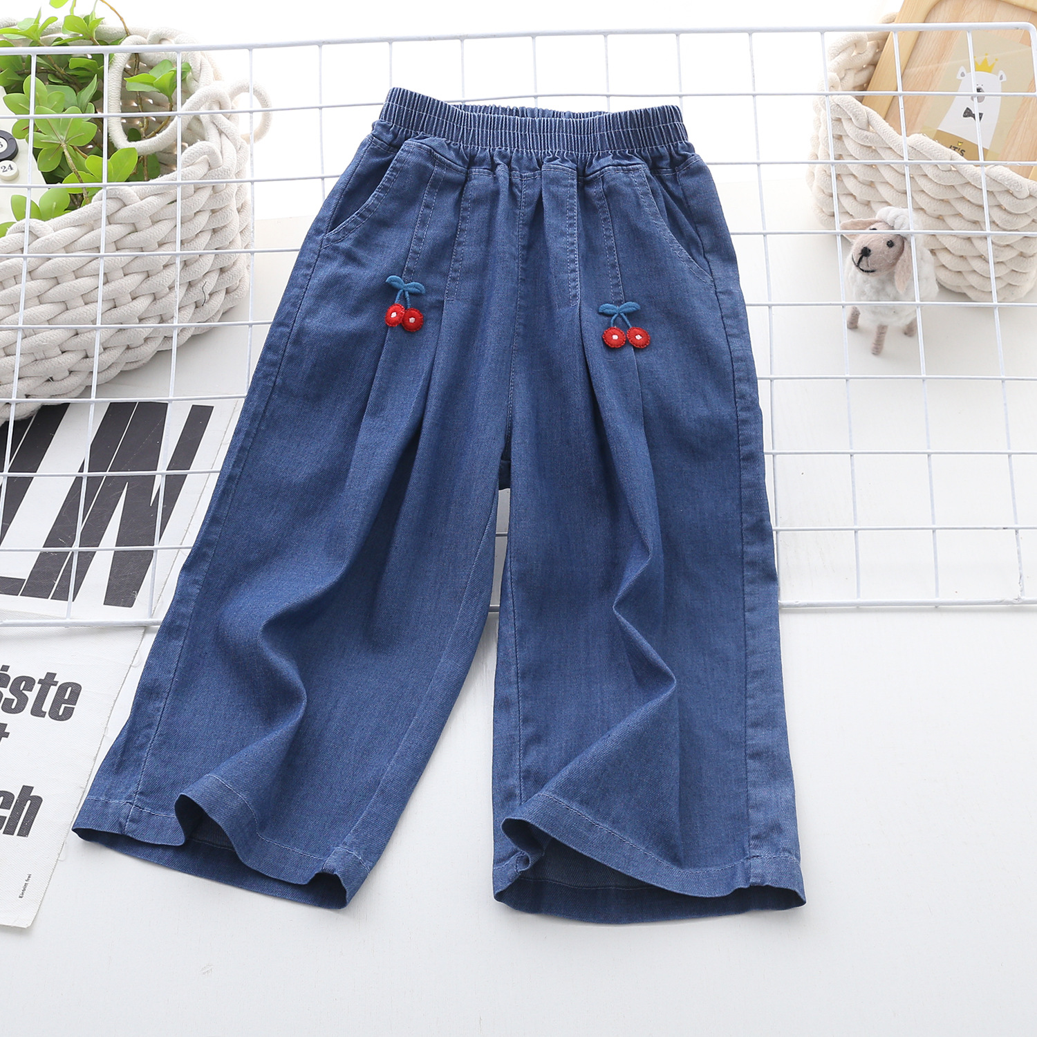 2025 년 여름 소녀 텐셀 데님 넓은 다리 바지 100-170 넓은 다리 바지 하이 퀄리티 여성 여름 크롭 바지스토어 가기