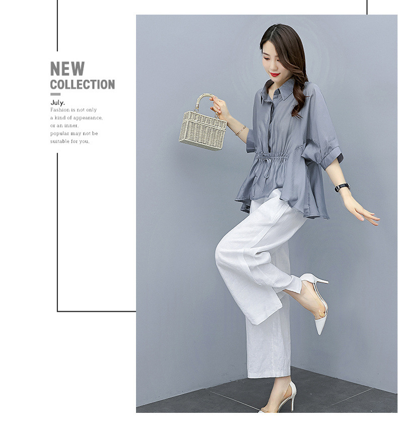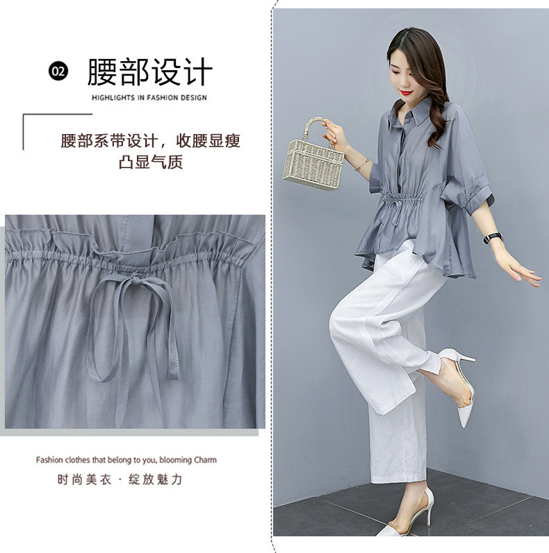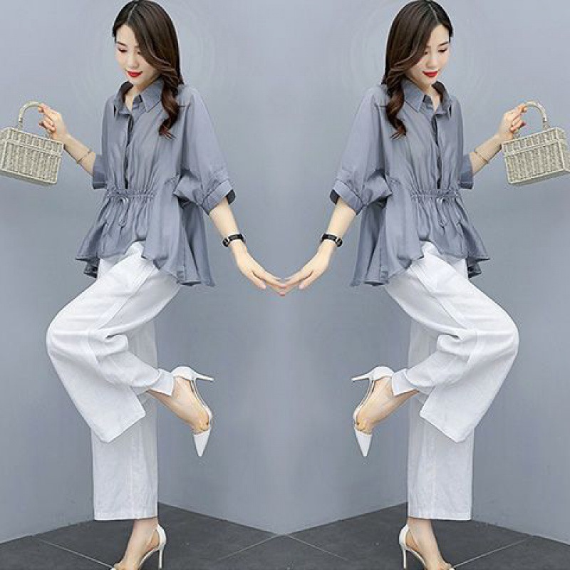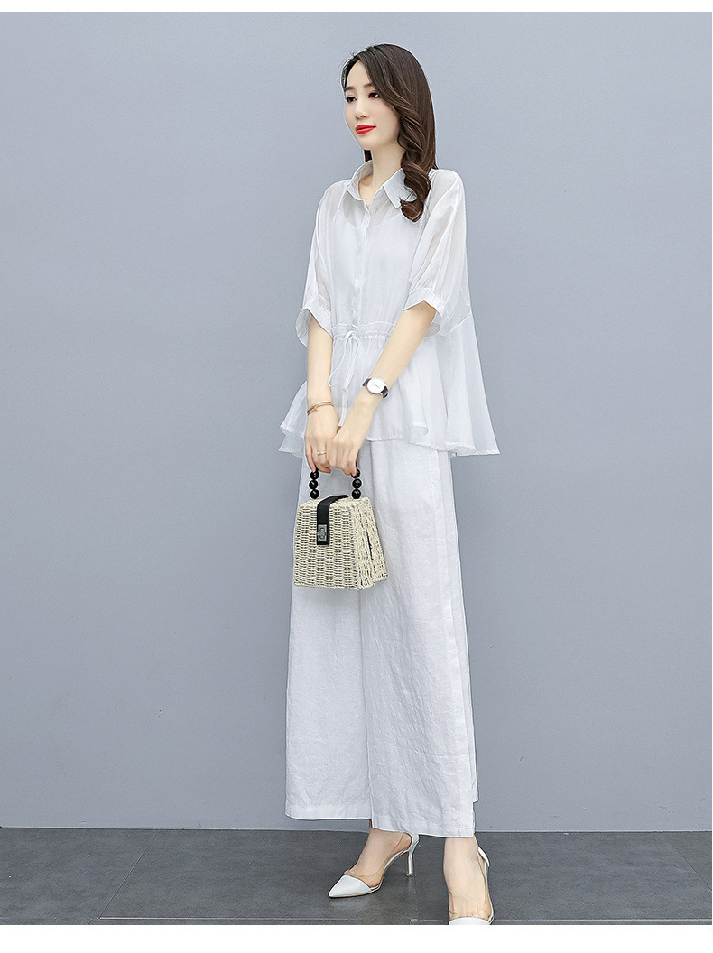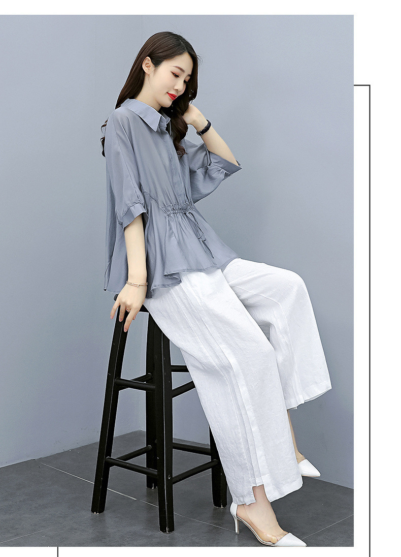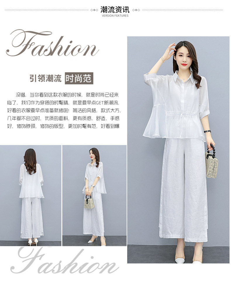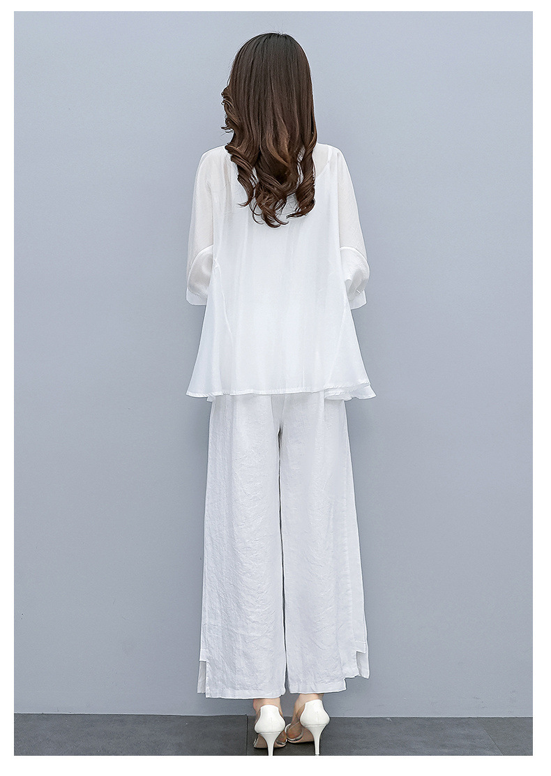 패션 코튼 및 리넨 세트 여성 유행 봄과 여름 새로운 우아한 슬리밍 서양식 연령 감소 리넨 와이드 레그 바지 투피스 세트
