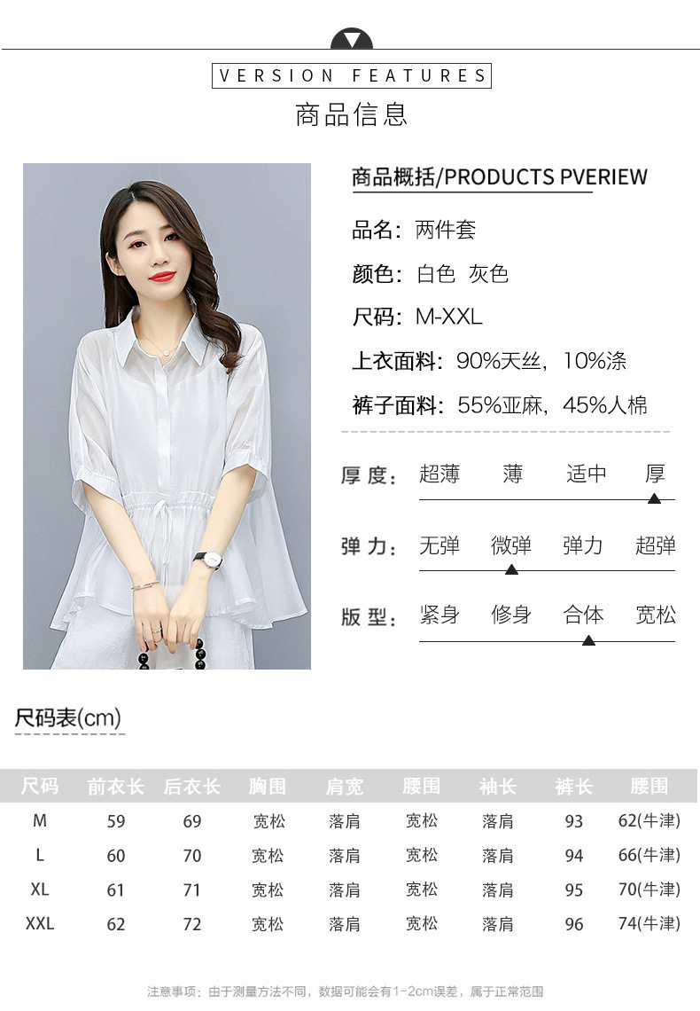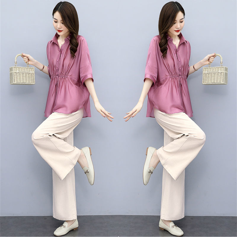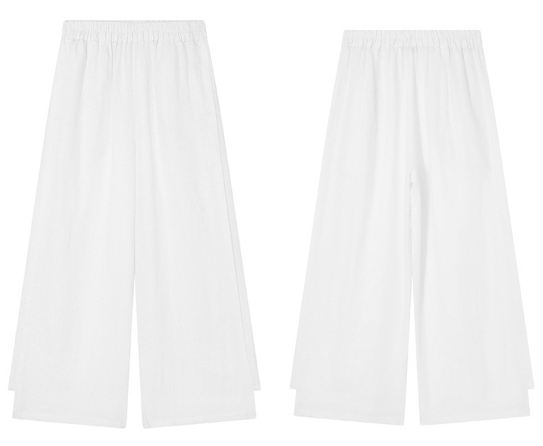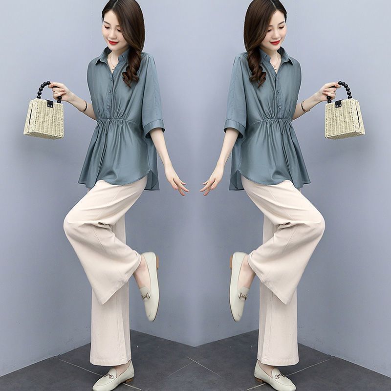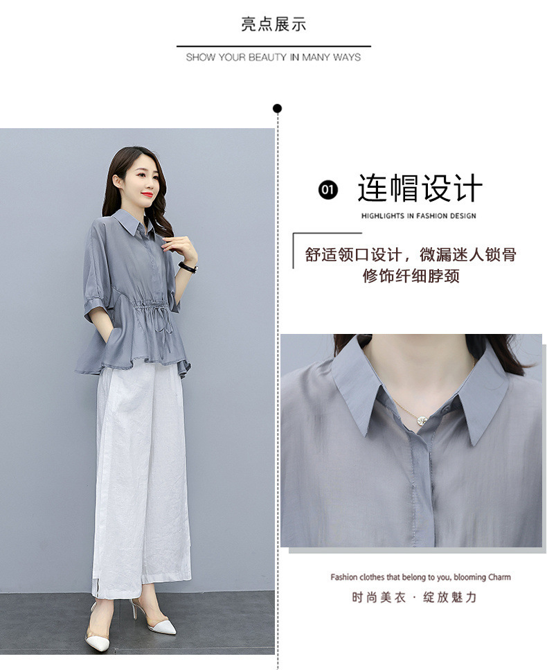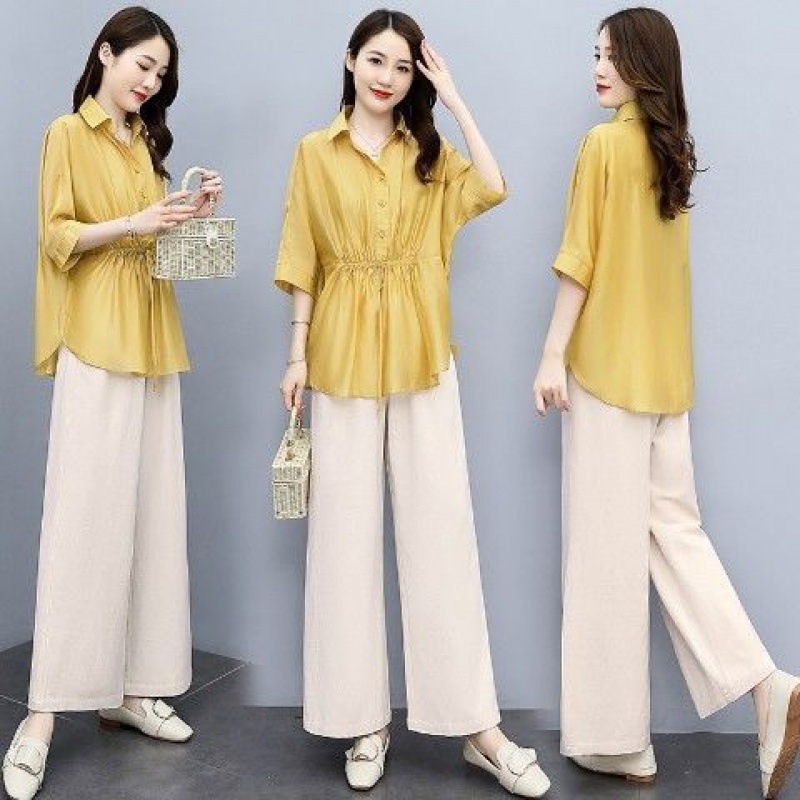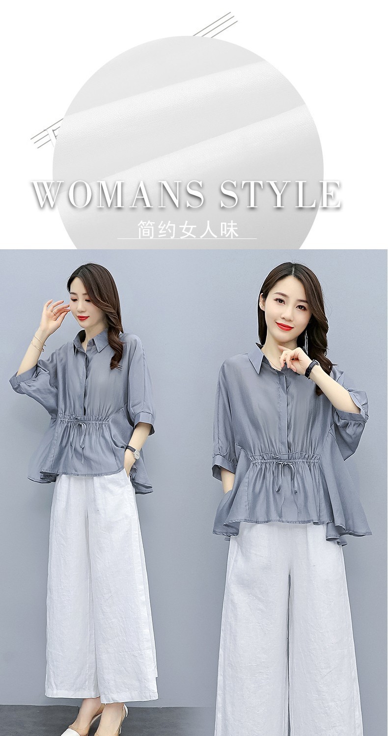 패션 코튼 및 리넨 세트 여성 유행 봄과 여름 새로운 우아한 슬리밍 서양식 연령 감소 리넨 와이드 레그 바지 투피스 세트