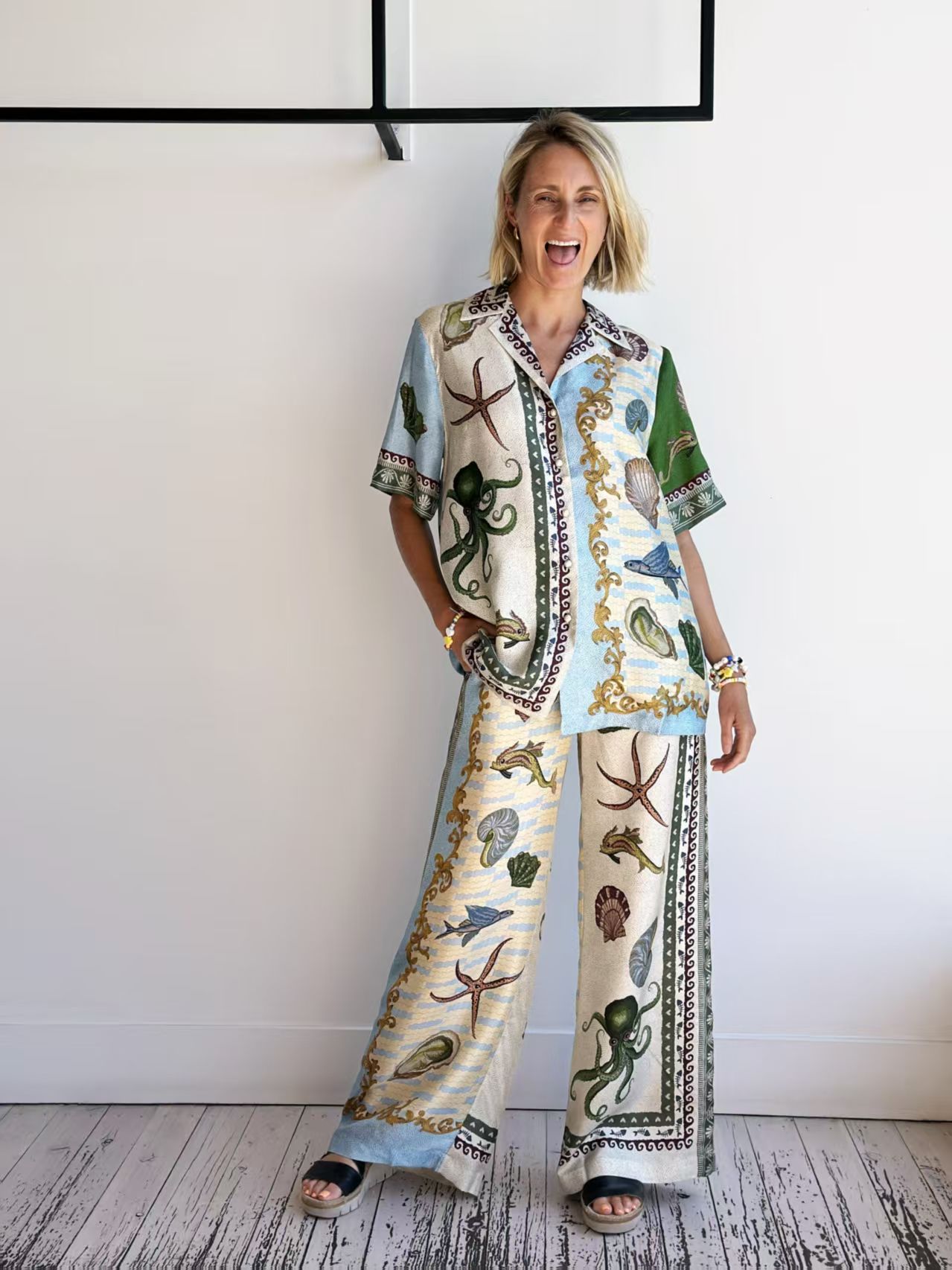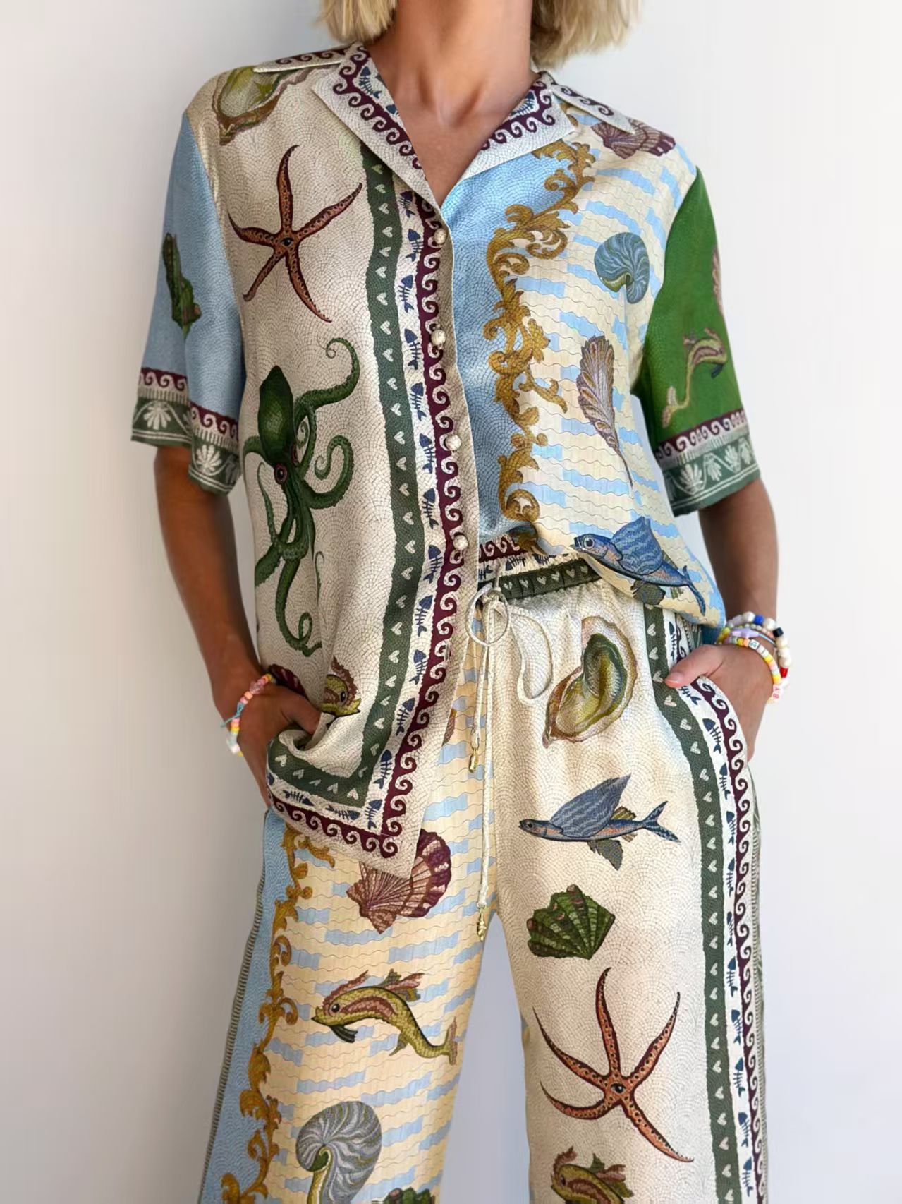 유럽과 미국 국경 2025 새로운 아마존 AliExpress 캐주얼 패션 조커 린넨 셔츠 세트 칼라 셔츠 세트