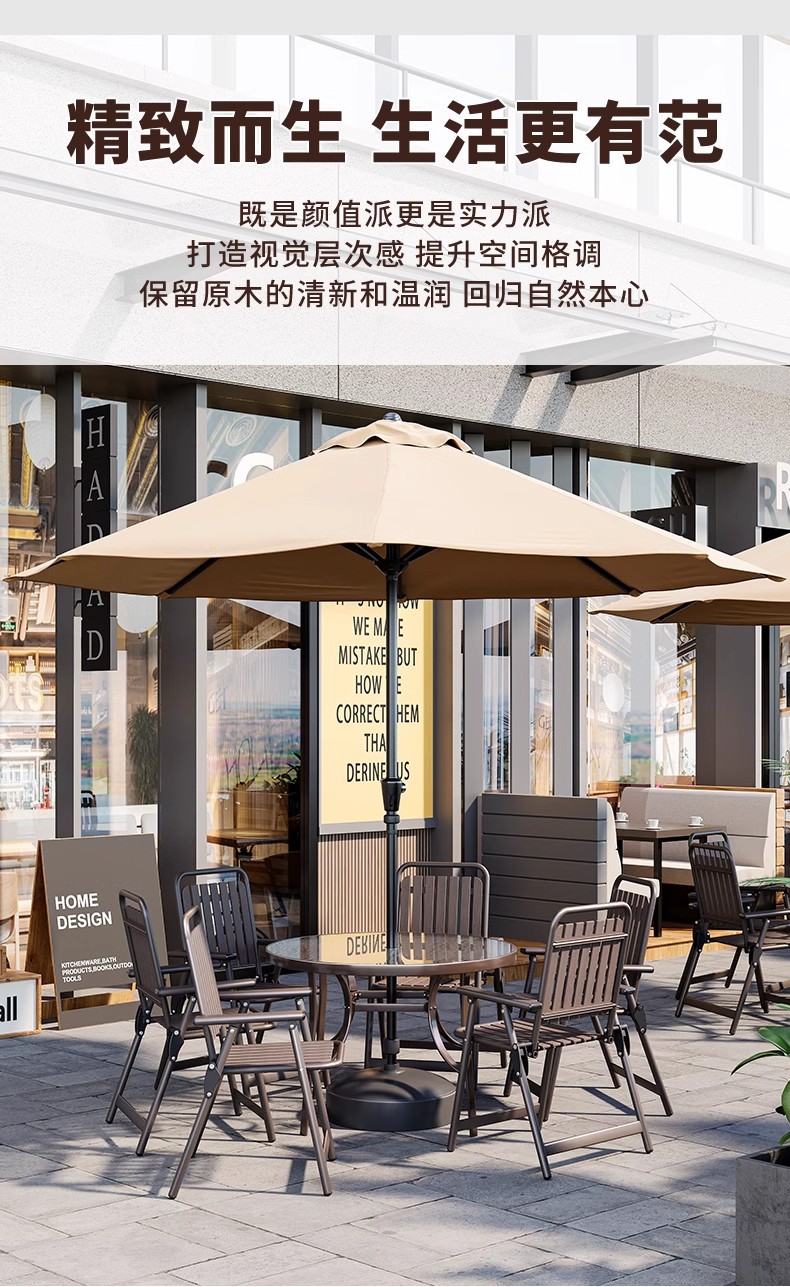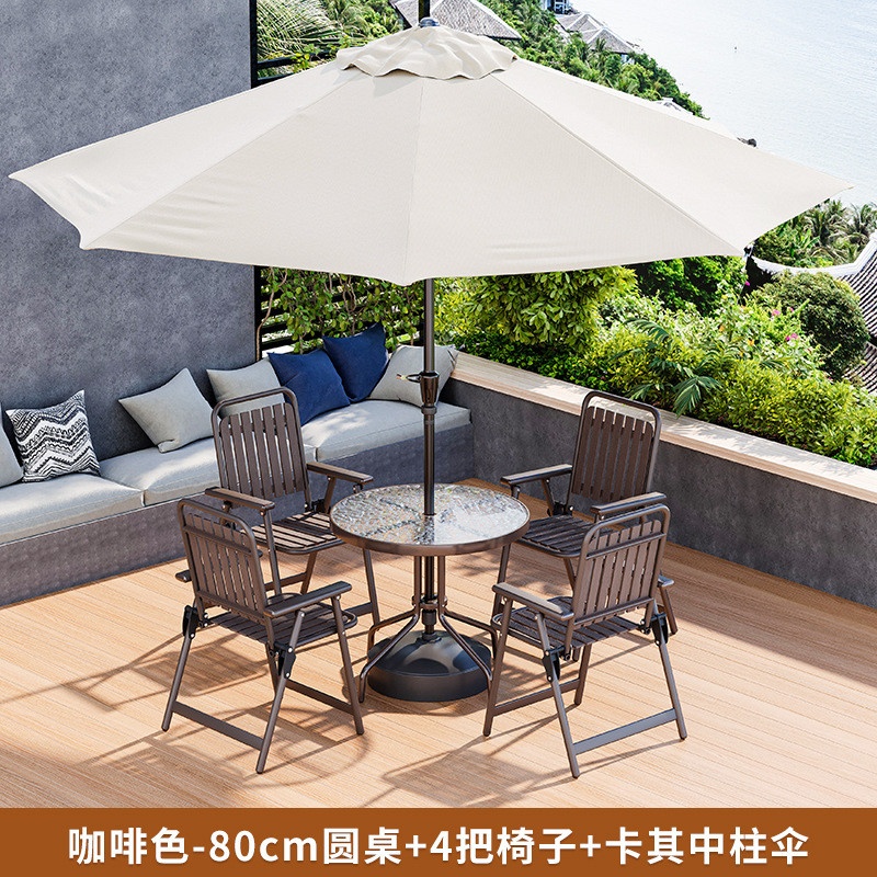 • 커피 접이식 세로무늬 의자 (의자 4개 + 원형 테이블 80개 + 카키색 중기우산)