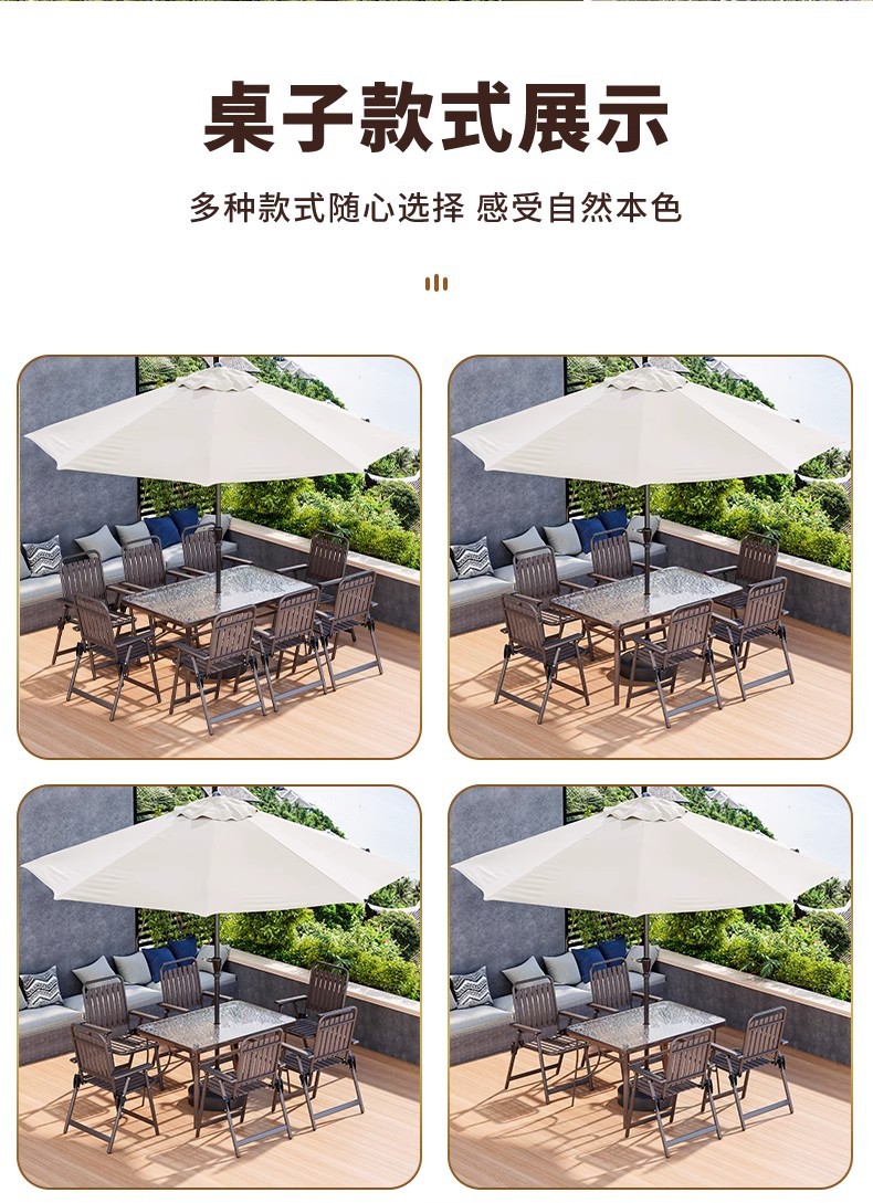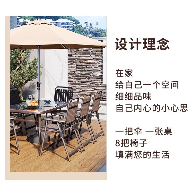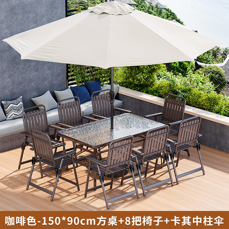 • 커피 접이식 세로무늬 의자 (의자 8개 + 물무늬 롱테이블 150*90 + 카키색 중기우산)