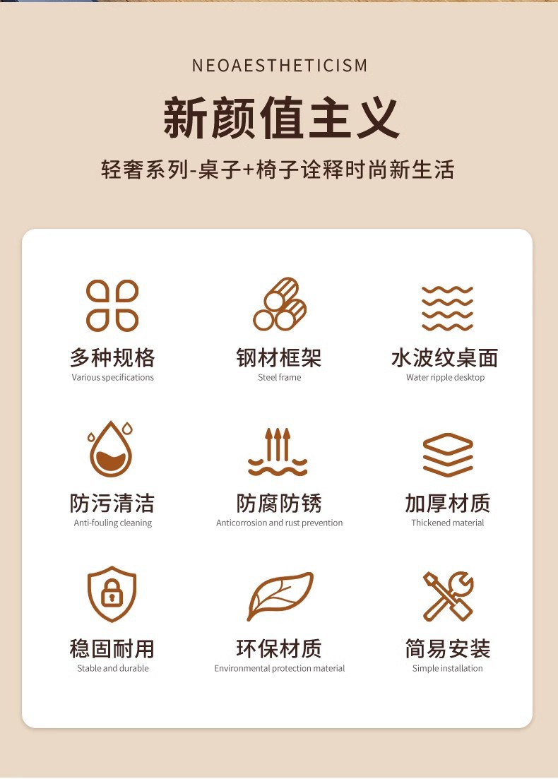 • 커피 접이식 세로무늬 의자 (의자 4개 + 물무늬 조립 사각 테이블 80개)