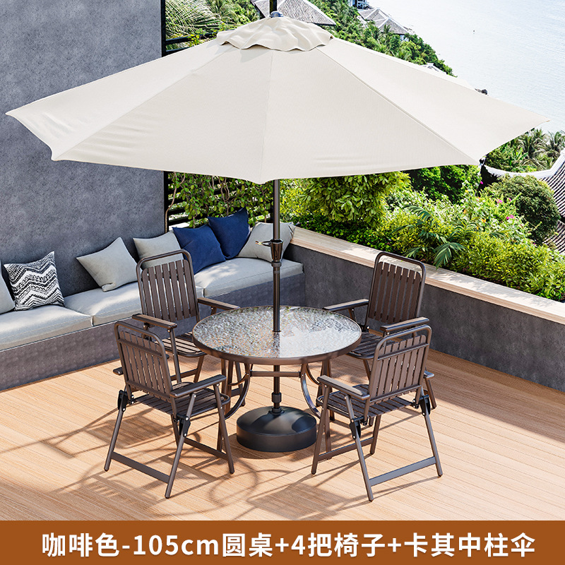• 커피 접이식 세로무늬 의자 (의자 4개 + 물무늬 조립원탁 105개 + 카키색 중기우산)