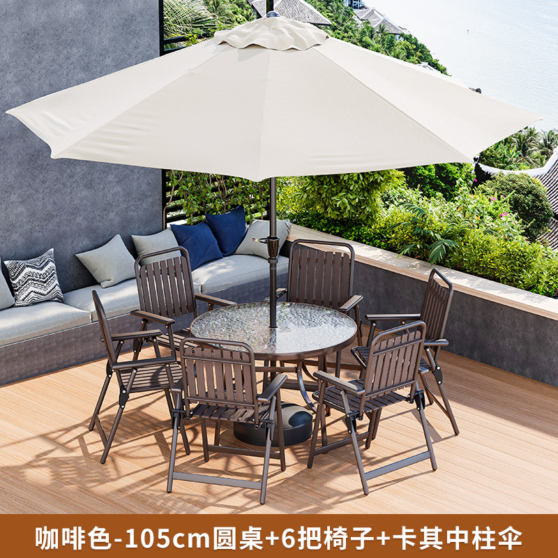 • 커피 접이식 세로무늬 의자 (의자 6개 + 물무늬 조립원탁 105개 + 카키색 중기우산)
