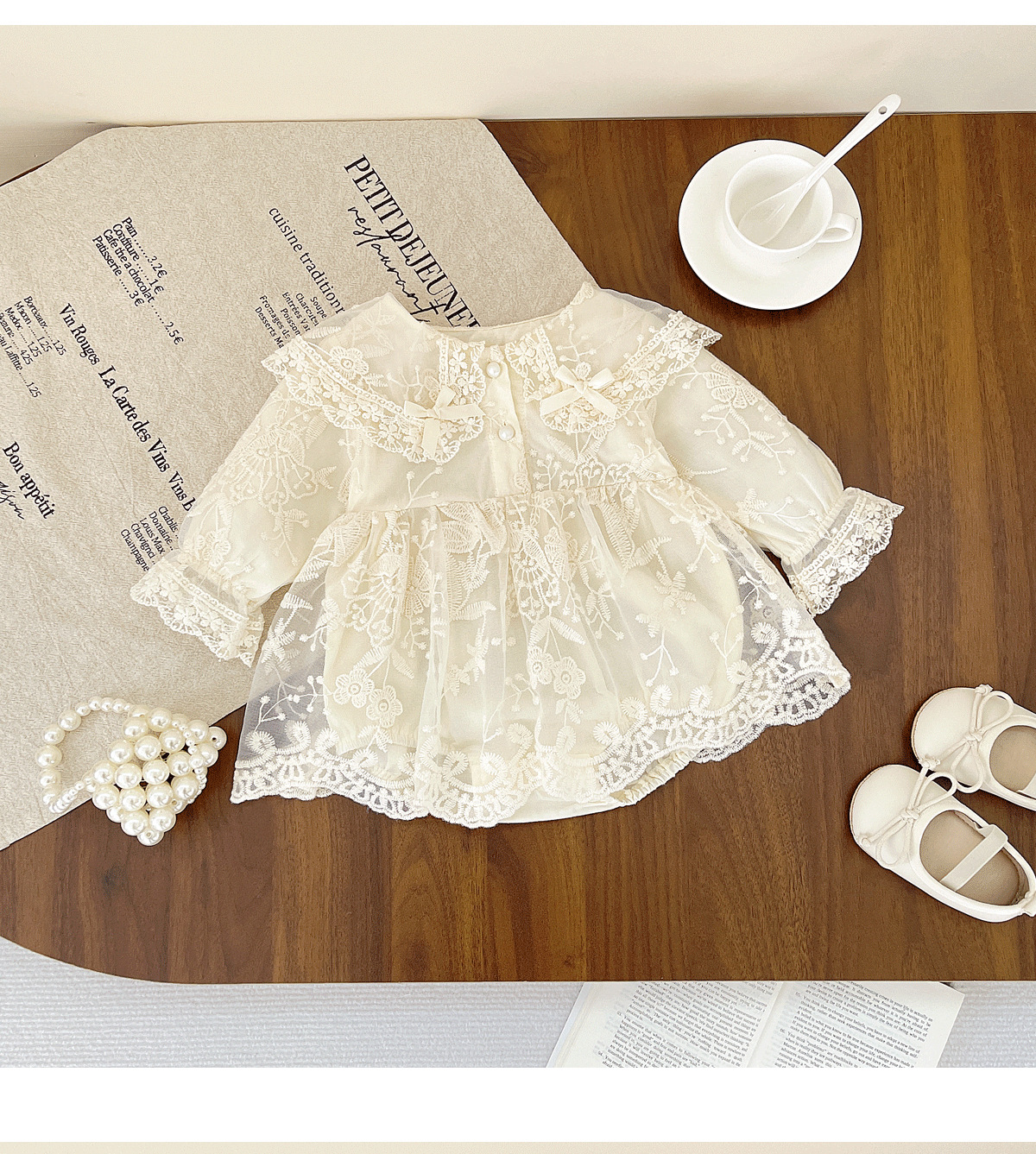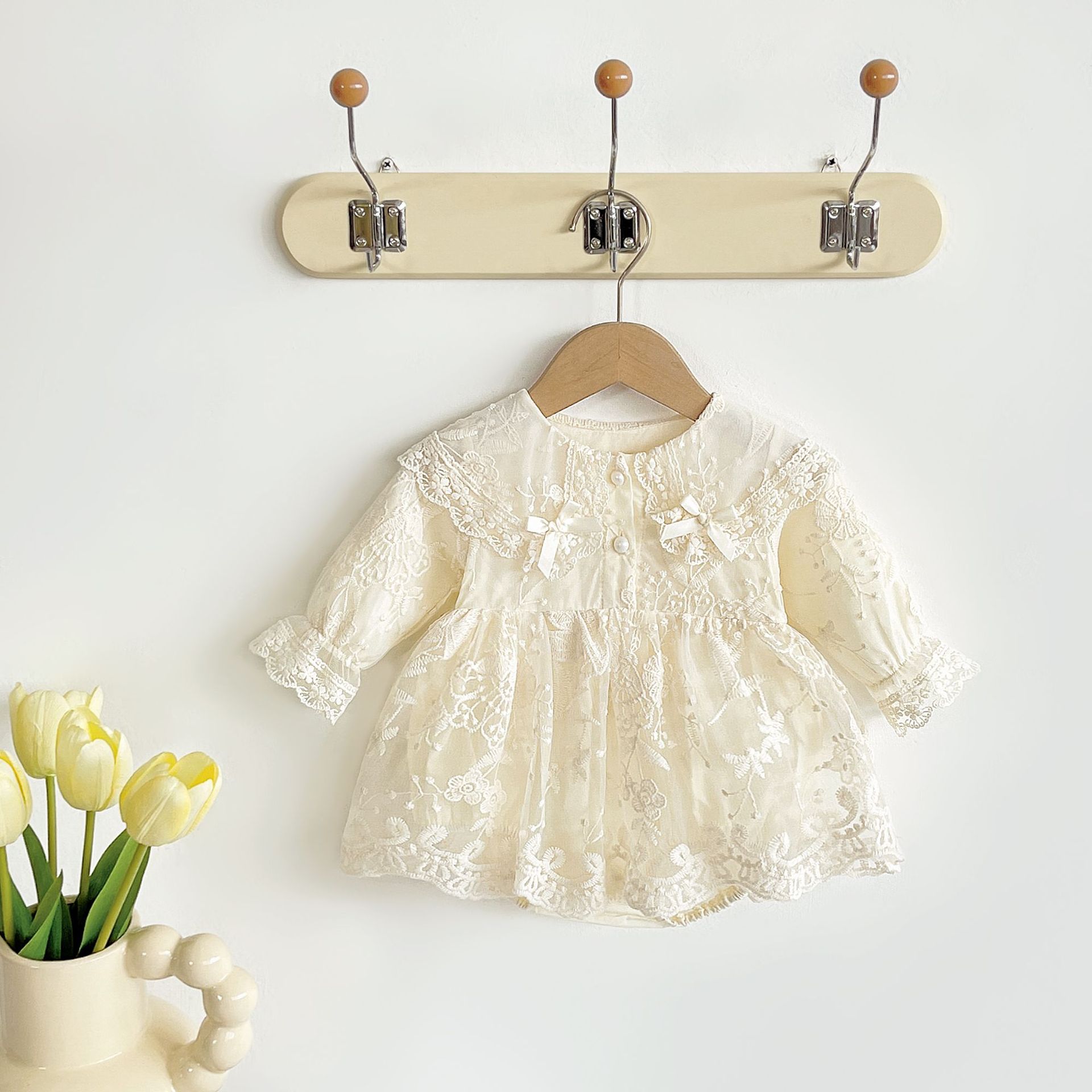 2025 새로운 아기 한 살짜리 드레스 레이스 드레스 긴 소매 슈퍼 요정 공주 드레스 레이스 옷깃 새 드레스스토어 가기