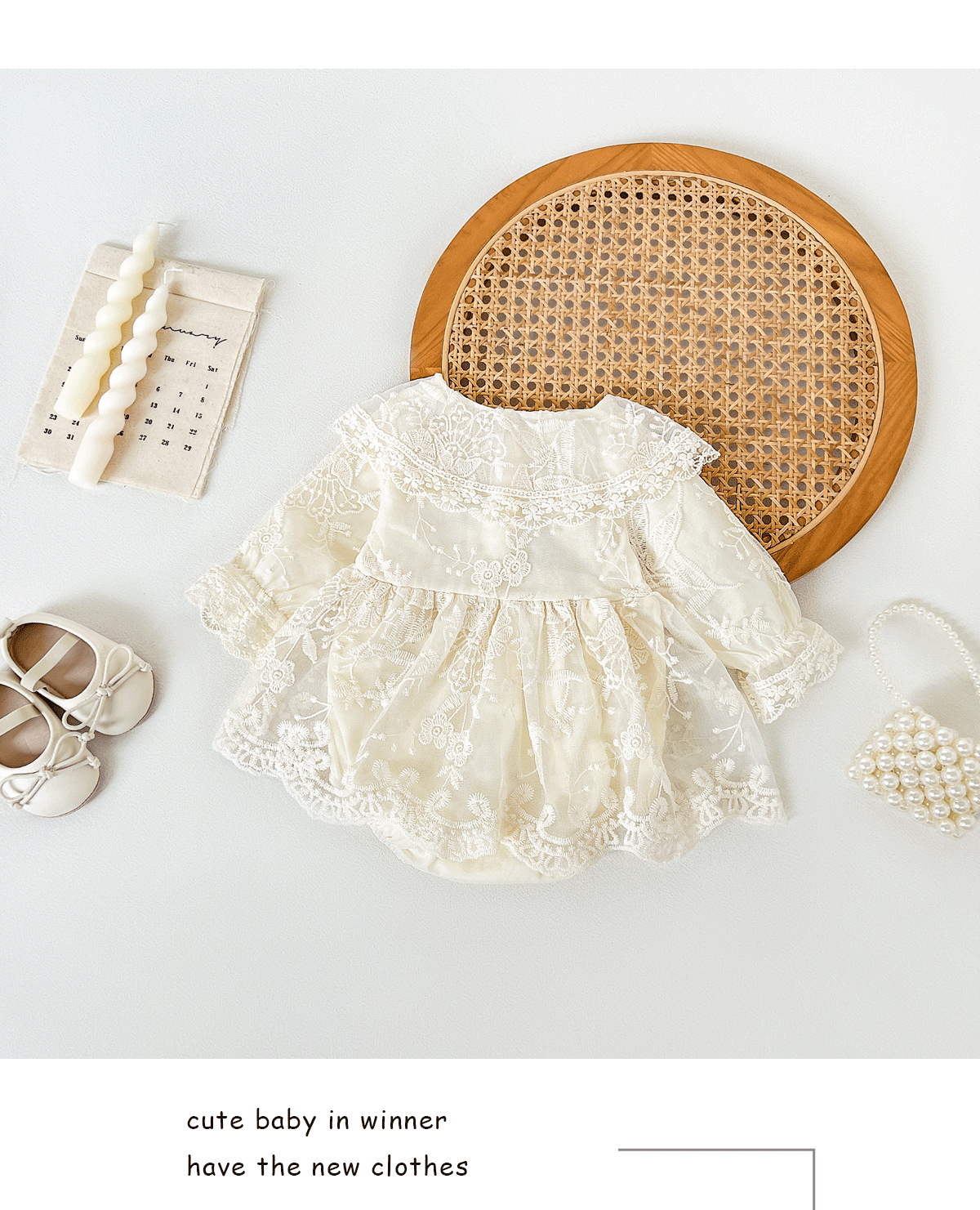 2025 새로운 아기 한 살짜리 드레스 레이스 드레스 긴 소매 슈퍼 요정 공주 드레스 레이스 옷깃 새 드레스
