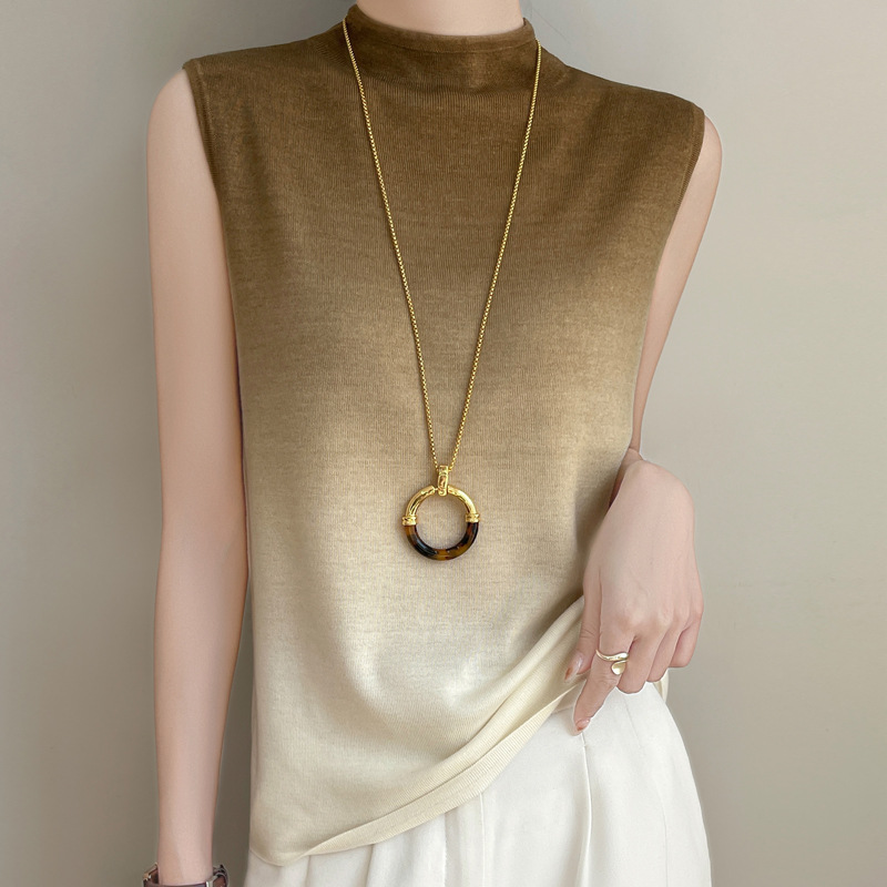 Wrested Wool Mock-높은 목 니트 조끼 여성용 내부 슬림 슬리밍 그라디언트 베이스 레이어 셔츠 민소매 얇은 탑