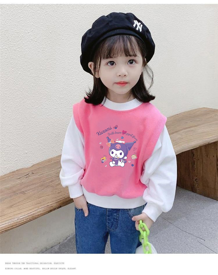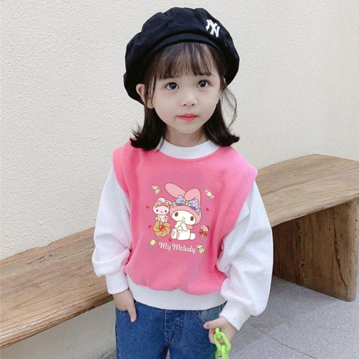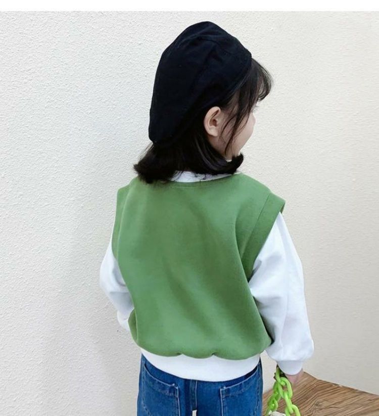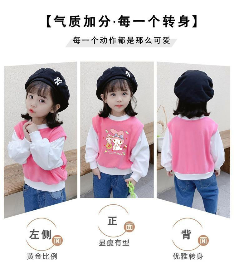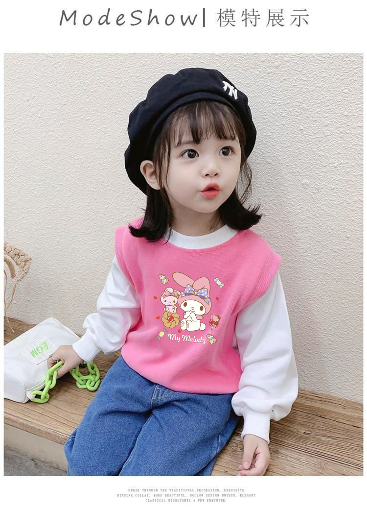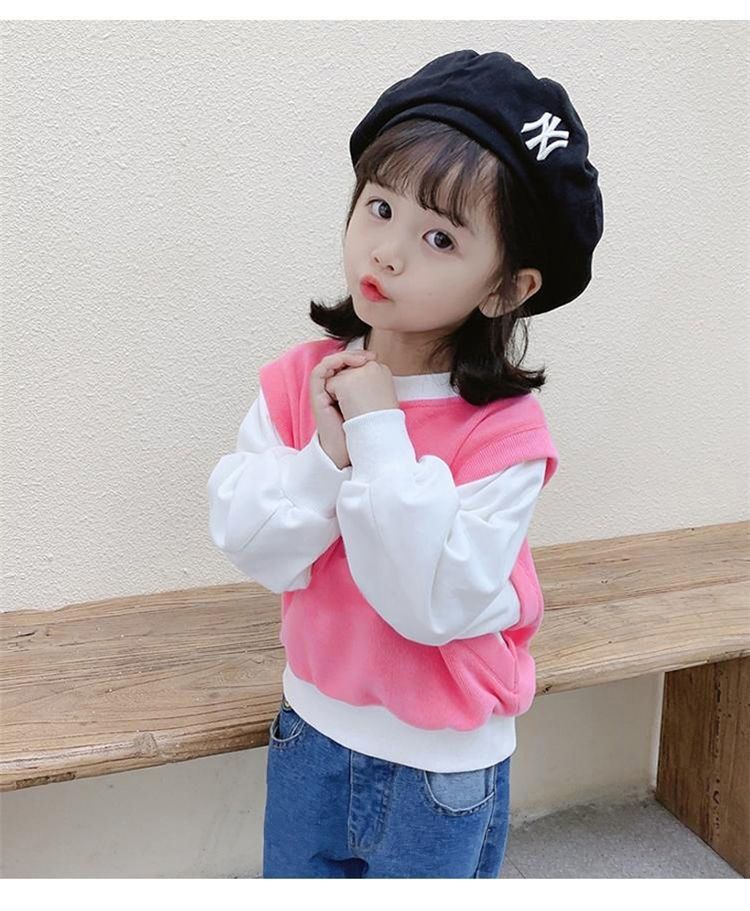 봄과 가을 소녀 스웨터 2025 새로운 스타일 한국 스타일 라운드 넥 인 스플 라이스 어린이 가짜 투피스 탑 봄 스타일스토어 가기