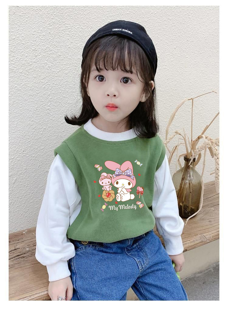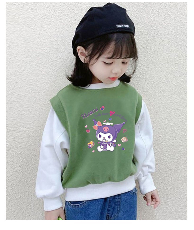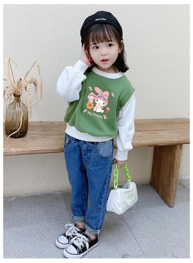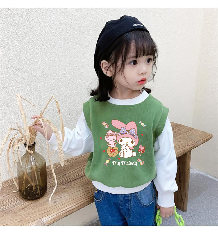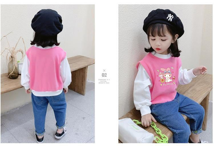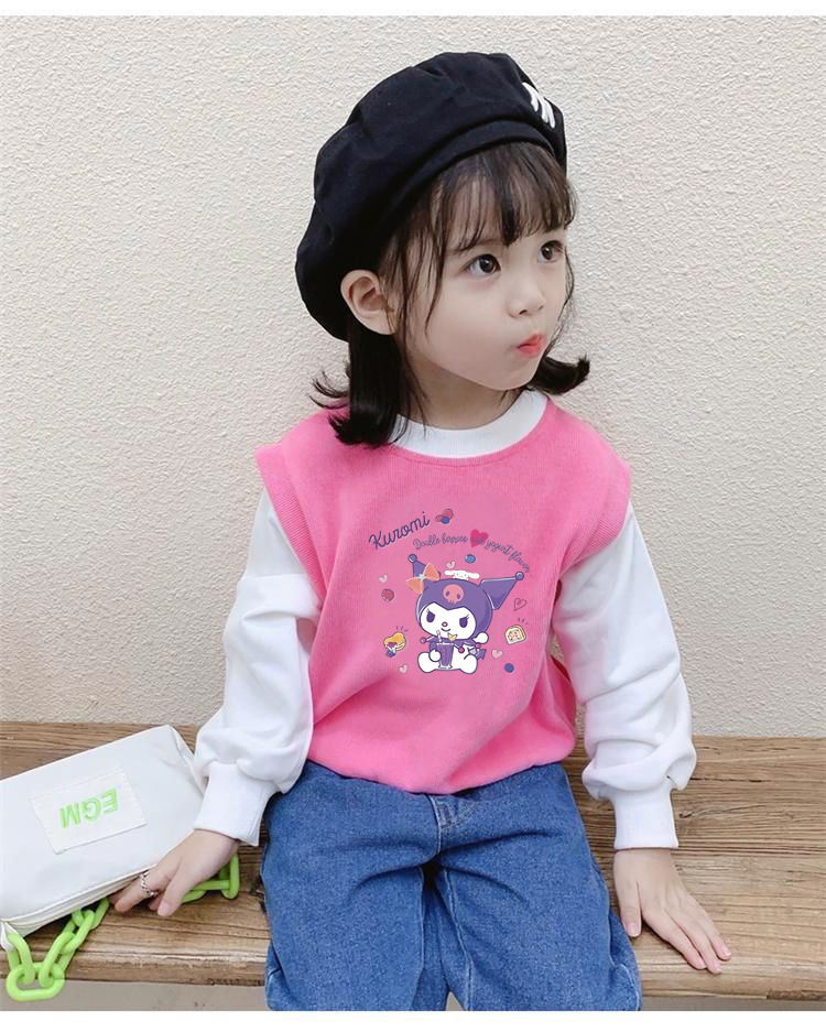 봄과 가을 소녀 스웨터 2025 새로운 스타일 한국 스타일 라운드 넥 인 스플 라이스 어린이 가짜 투피스 탑 봄 스타일스토어 가기