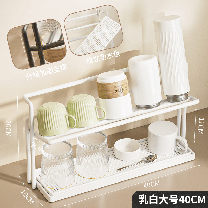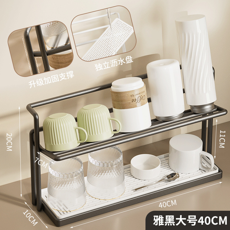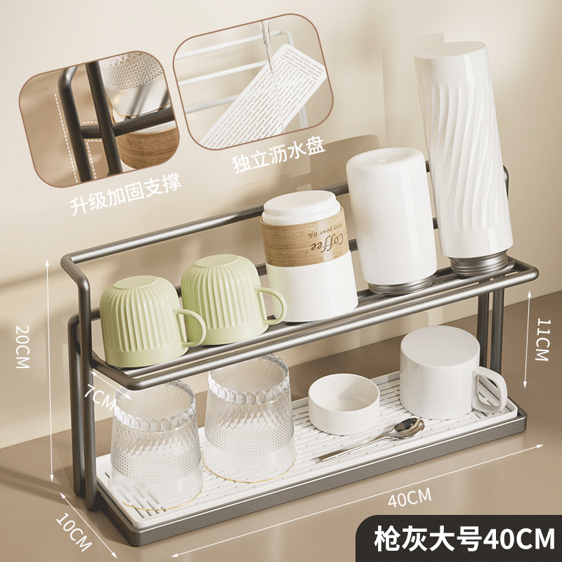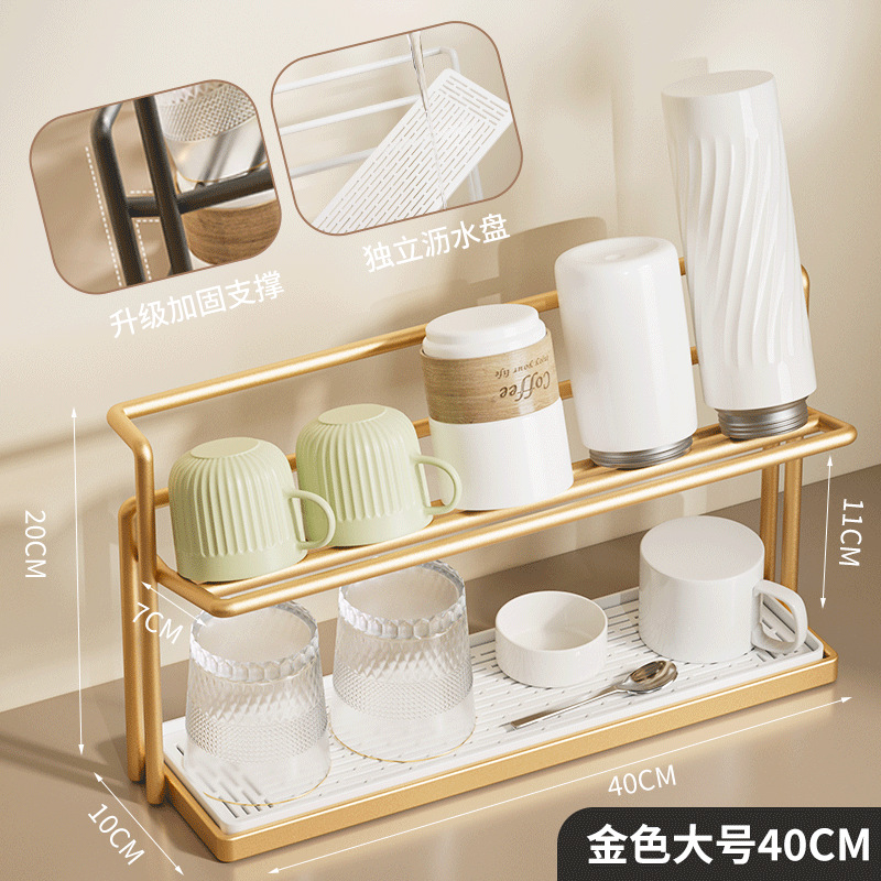 컵 스토리지 랙 더블 레이어 티 컵 랙 티 세트 스토리지 랙 배수 트레이 데스크탑 워터 컵 라이트 럭셔리 카운터 탑