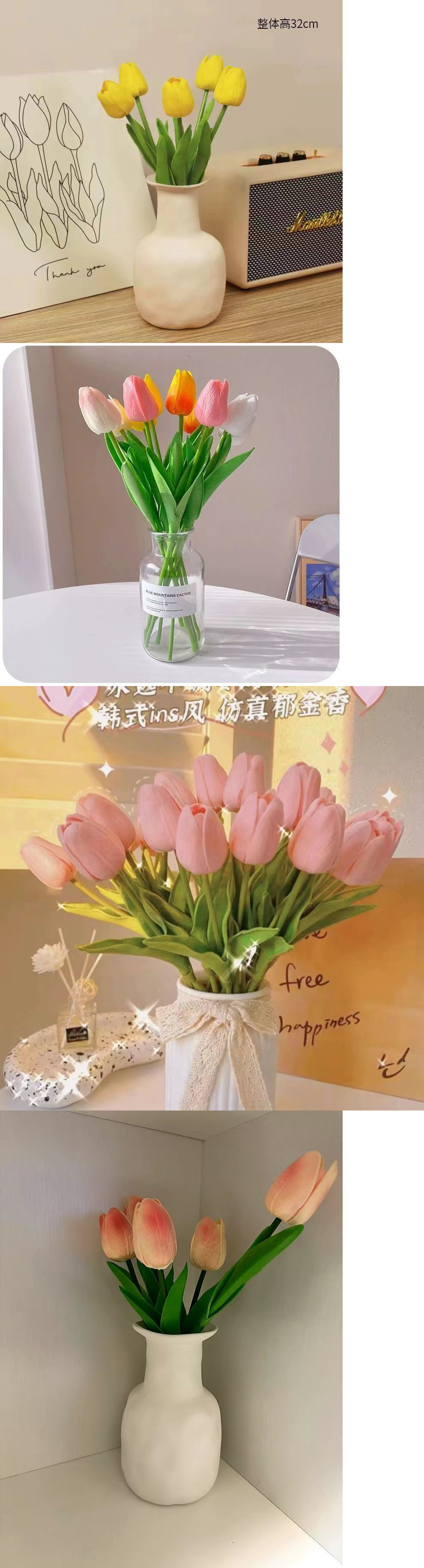 실내 스타일 튤립 인공 꽃 꽃병 고급 PU 가짜 꽃 장식 식탁 거실 장식 홈 장식스토어 가기