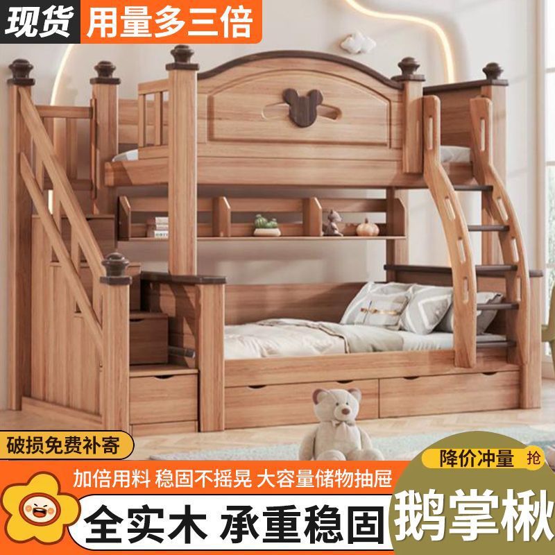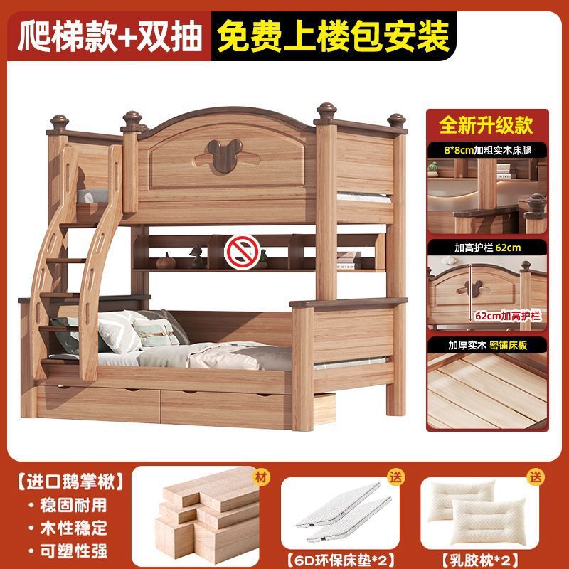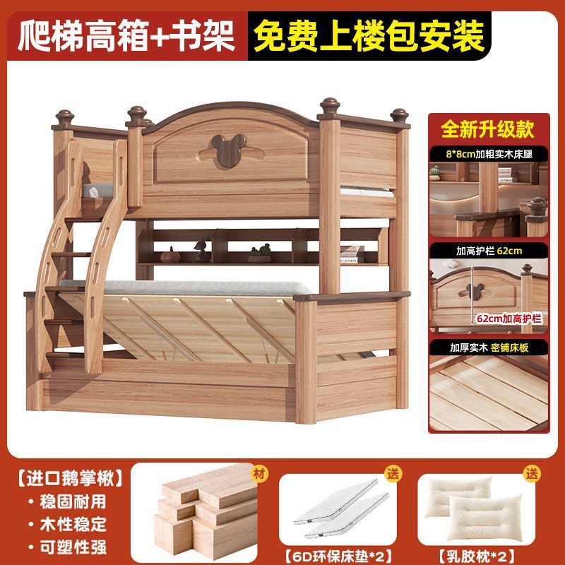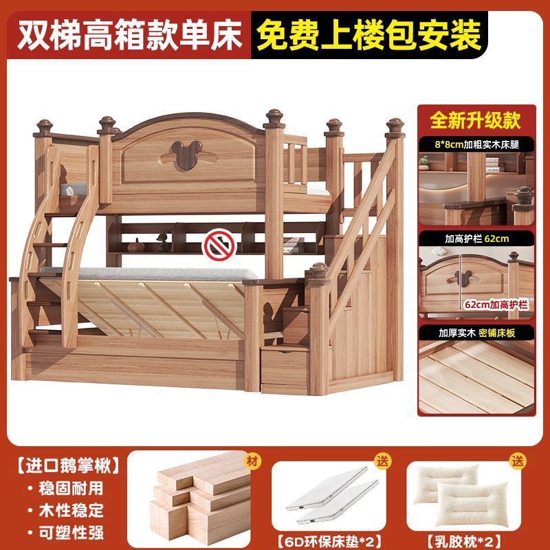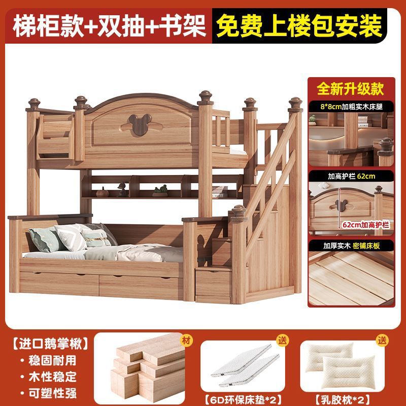 침대 이층 침대 풀 솔리드 우드 어린이 침대 엄마와 아이 침대 나무 침대 다기능 2 층 엄마와 아이 침대 높고 낮은 침대