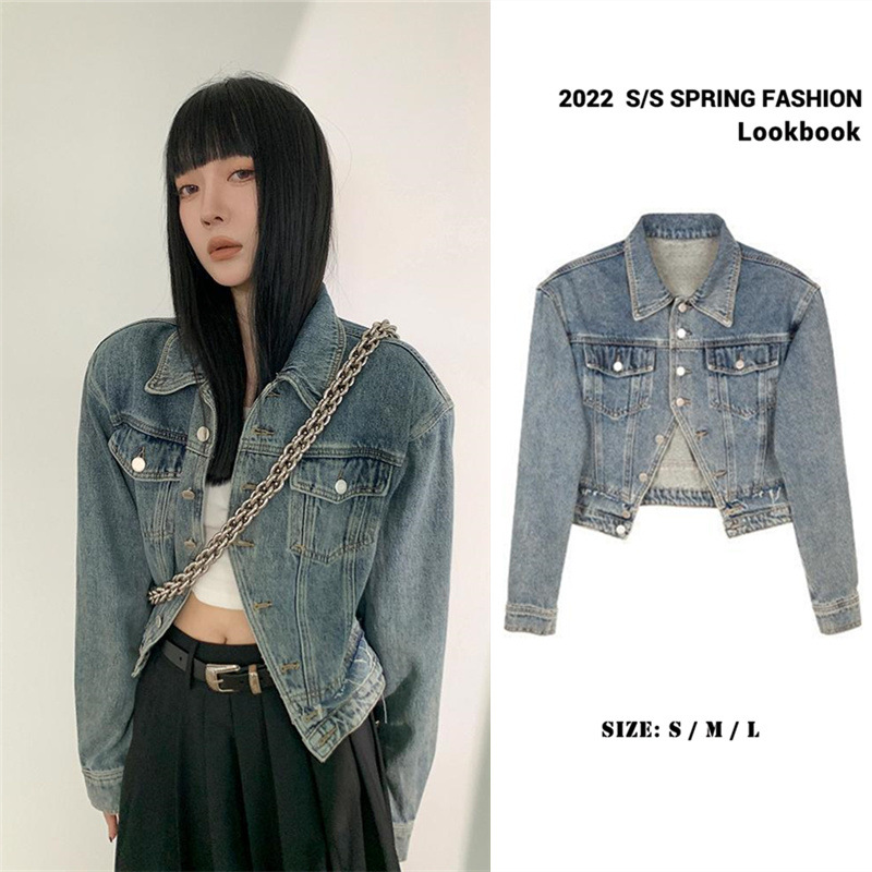 어깨 새 한국식 올매치 쇼트 데님 코트 여자 미국식 쇼트 코트 캐주얼 레트로 재킷 탑