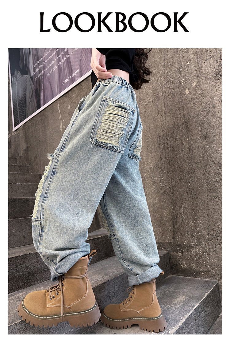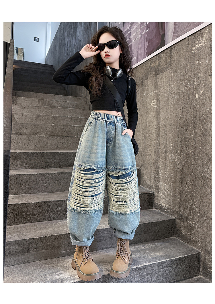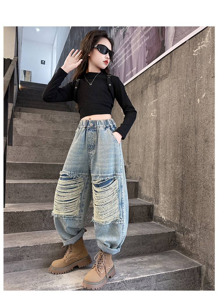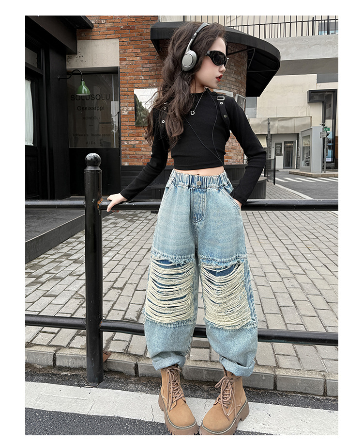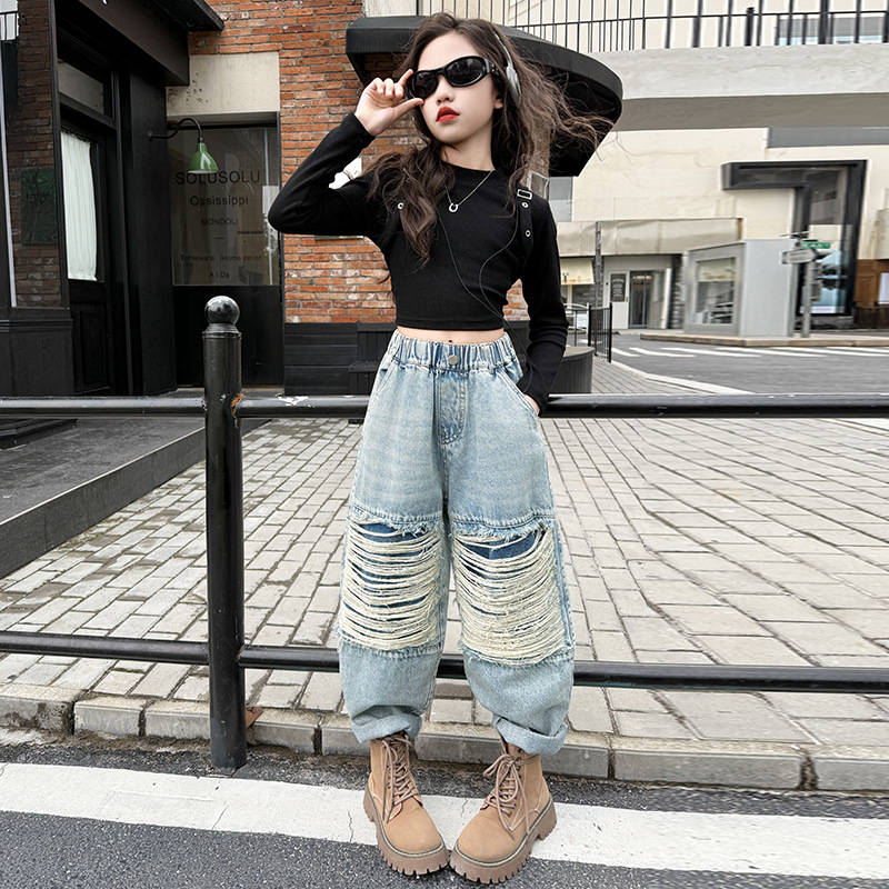 소녀 봄 청바지 힙합 트렌디 쿨 2025 새로운 도착 봄 가을 소녀 홀 프라이드 스트리트 댄스 하렘 바지스토어 가기