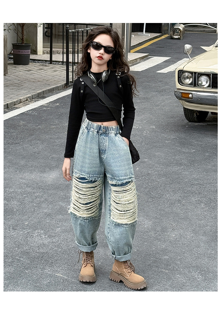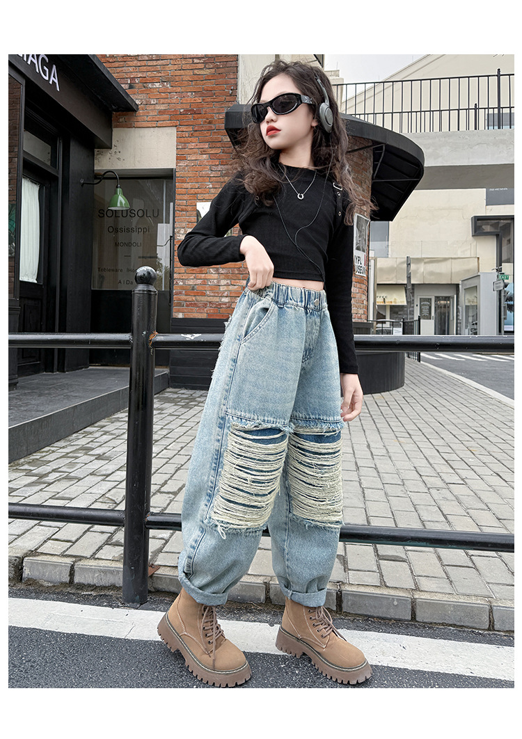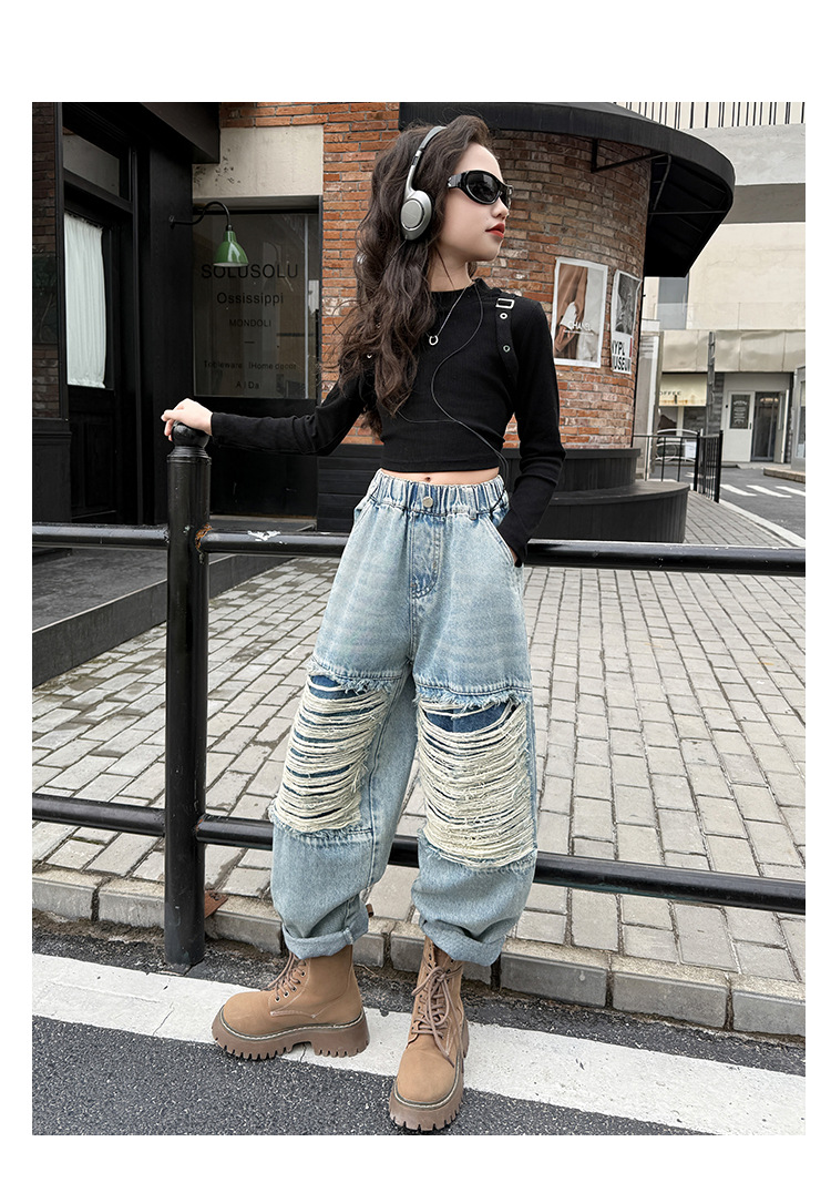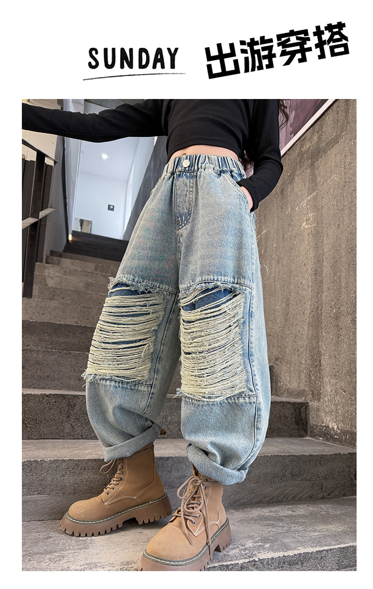 소녀 봄 청바지 힙합 트렌디 쿨 2025 새로운 도착 봄 가을 소녀 홀 프라이드 스트리트 댄스 하렘 바지스토어 가기