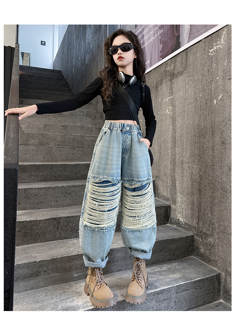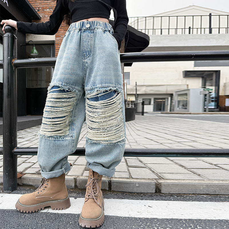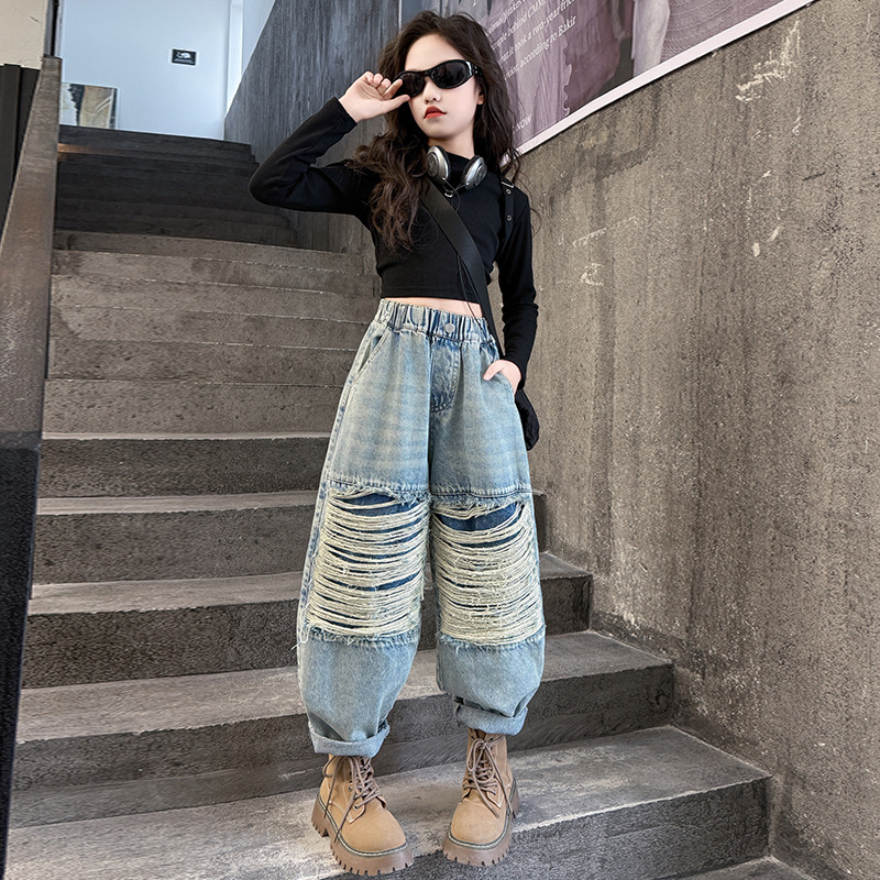 소녀 봄 청바지 힙합 트렌디 쿨 2025 새로운 도착 봄 가을 소녀 홀 프라이드 스트리트 댄스 하렘 바지