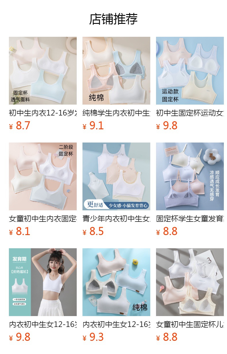 중학교 여고생 속옷 12-16 세 고정 컵 모터 개발 기간 학생 소녀 브라 조끼 고등학생스토어 가기