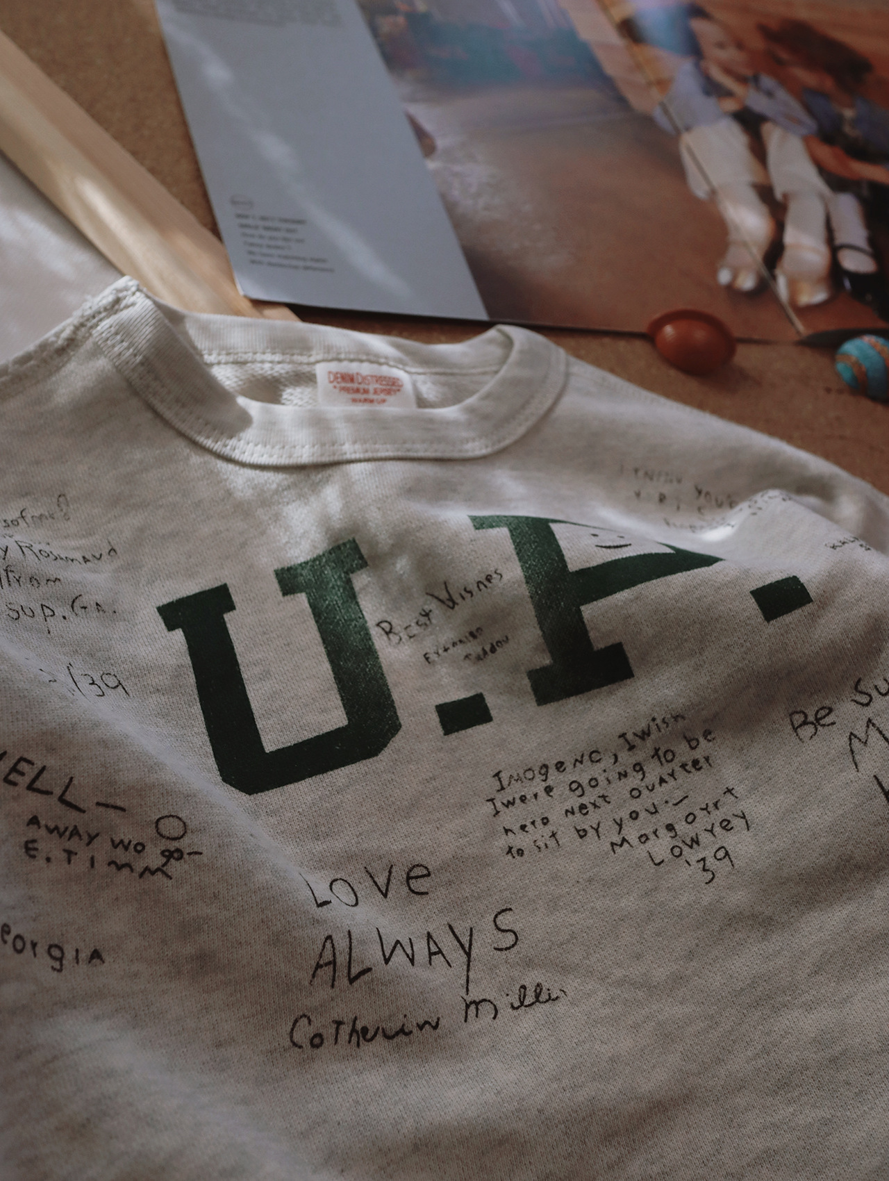 • 레트로 옐로우-UP-스마일리 프린트 스웨트셔츠