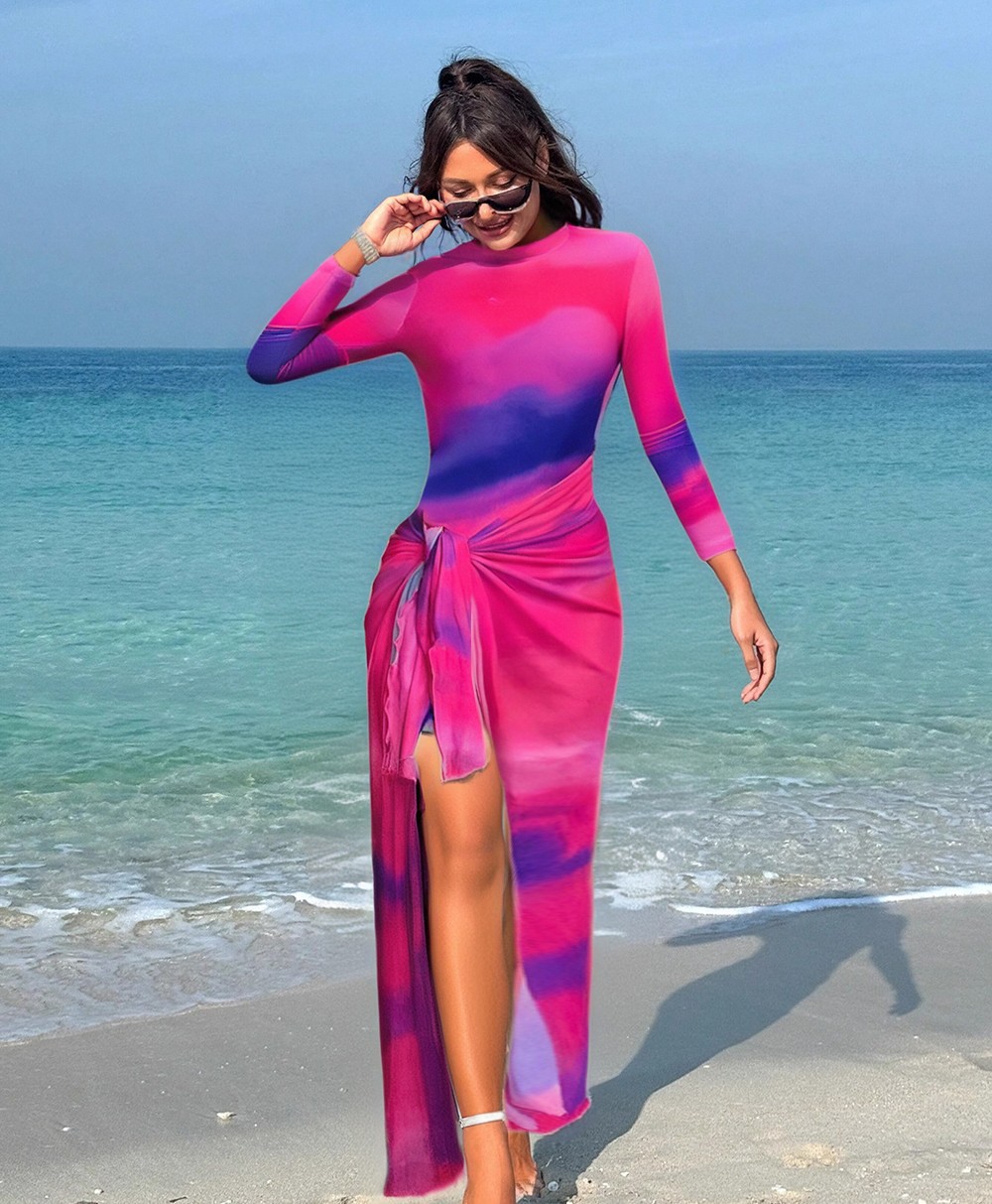 2025 년 국경 간 새로운 무슬림 수영복 넥타이 염색 타이트 보수적 인 해변 온천 수영복 여성용 3 피스 세트