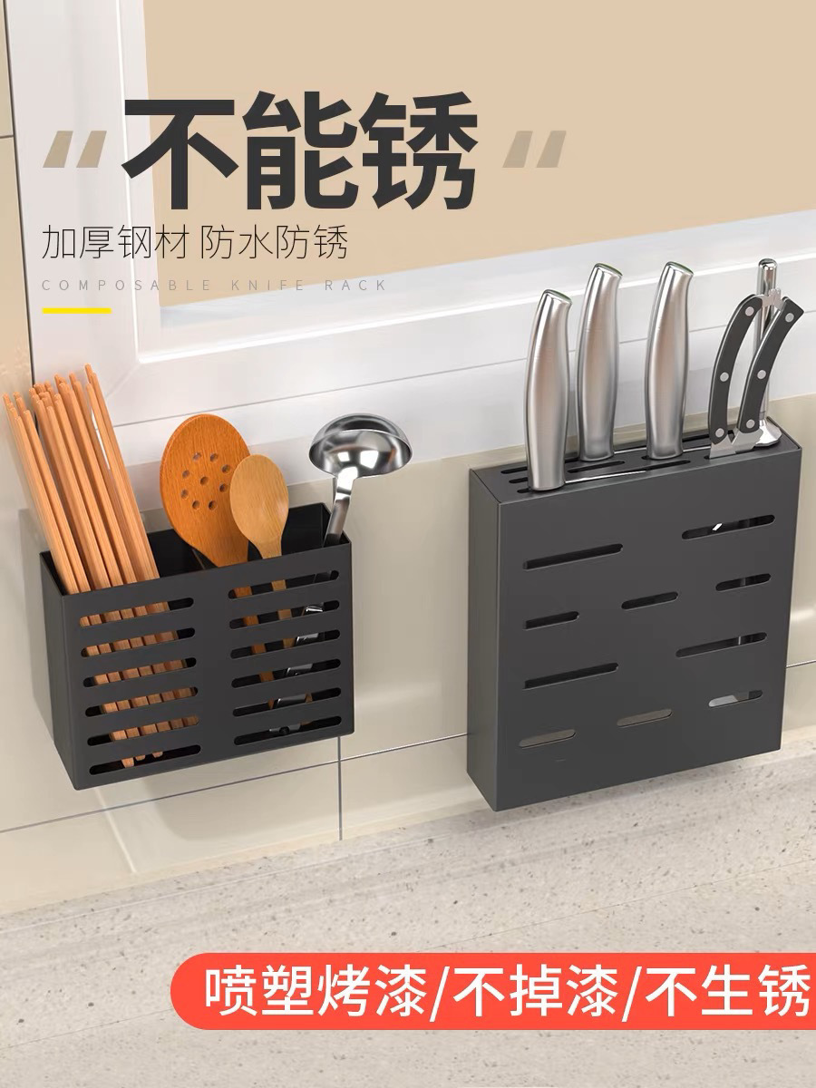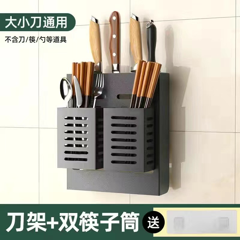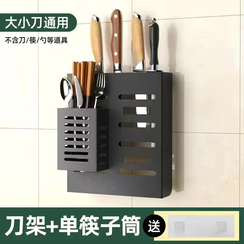 新款厨房置物架免打孔壁挂式特厚防锈刀架挂架筷子勺子多功能收纳