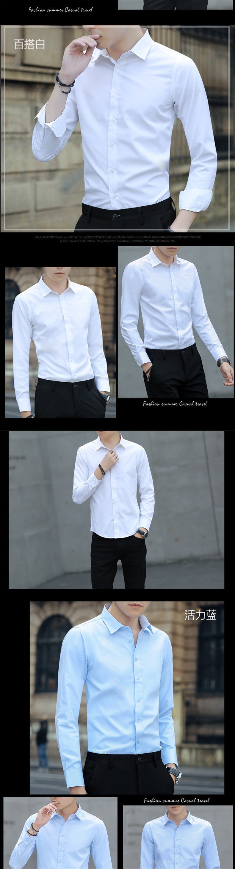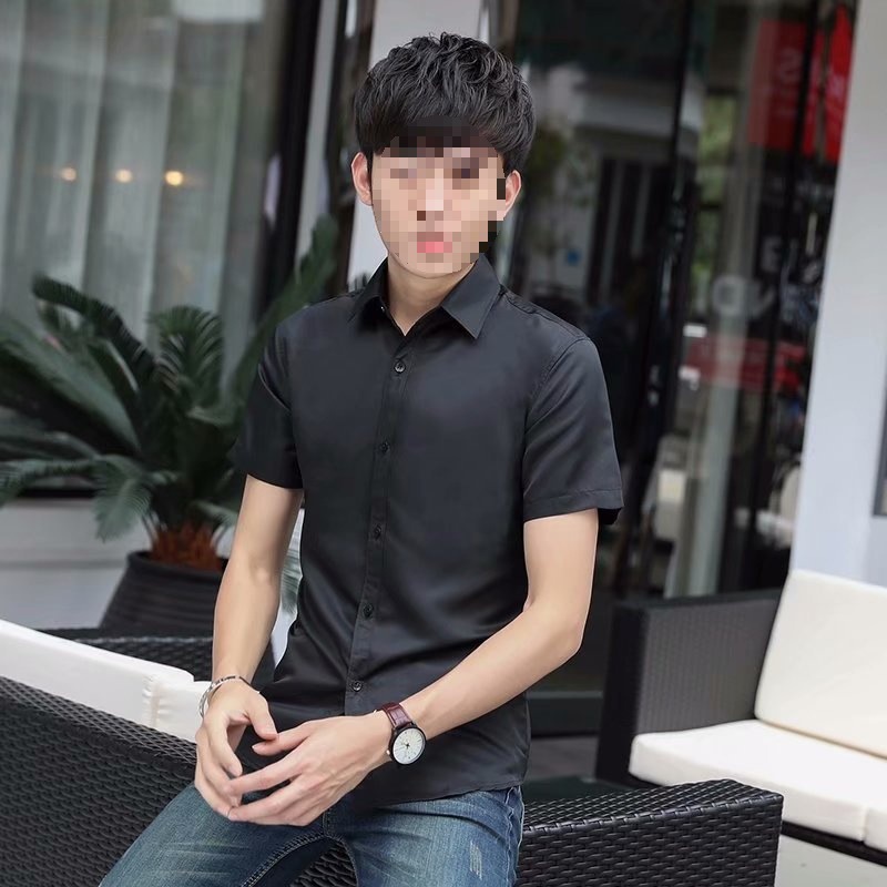 순수 화이트 셔츠 남성용 긴 반팔 셔츠 슬림핏 한국식 청소년 캐주얼 셔츠 비즈니스 작업복 봄과 가을